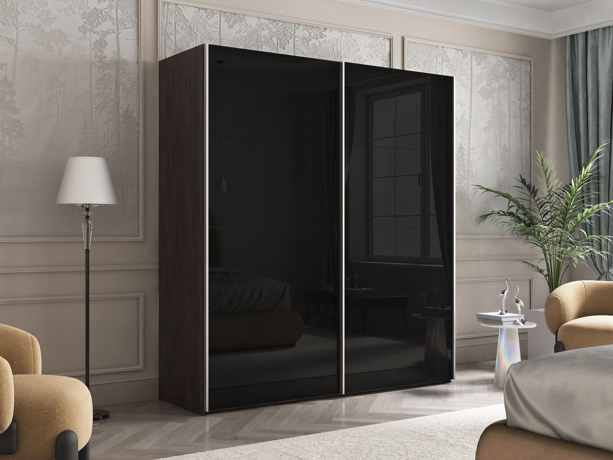 Шкаф Эста дуо Стекло черное 2400 х 2000 х 660 (Венге мали)