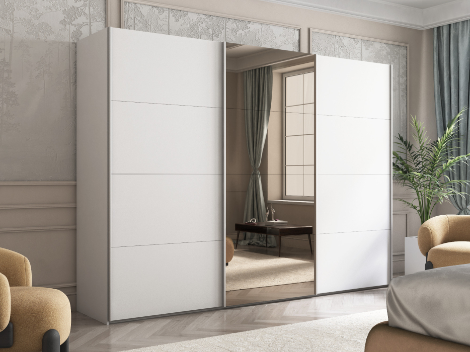 Шкаф-купе Эста ДСП+Зеркало+ДСП 270х66х240 (Белый) Код I0000392274