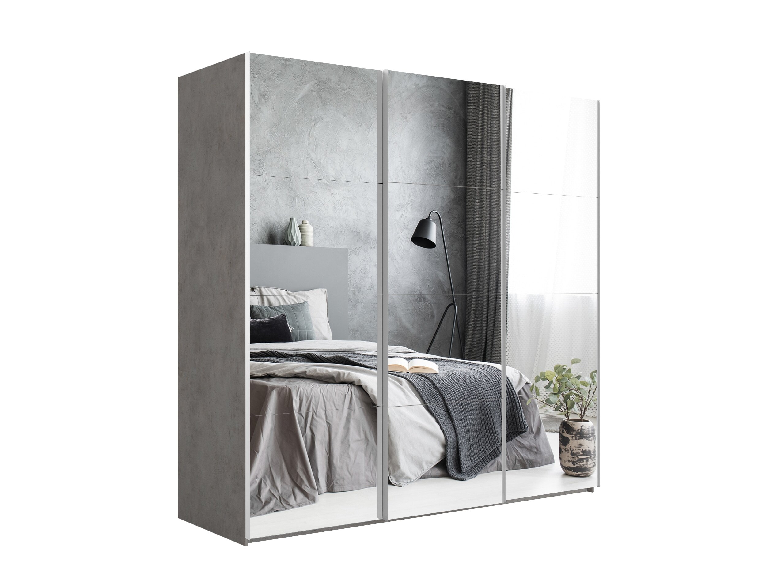 Шкаф-купе Эста Зеркало+Зеркало+Зеркало 300х66х240 (Бетон серый)