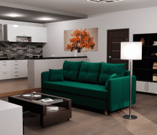 Диван-кровать оснащен механизмом трансформации "еврокнижка" и ящиком для хранения белья. Обивка выполнена из мягкого и приятного на ощупь велюра. Цвет дивана "фисташковый", что делает его универсальным и гармоничным для многих интерьеров.