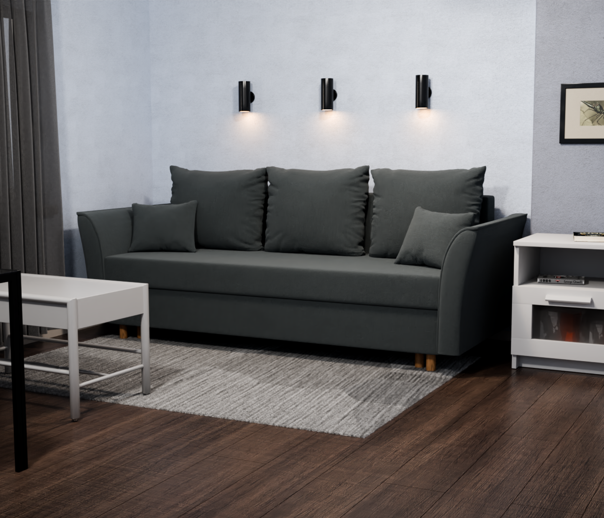 Особенности: с подлокотниками, раскладная конструкция, съемные подушки.