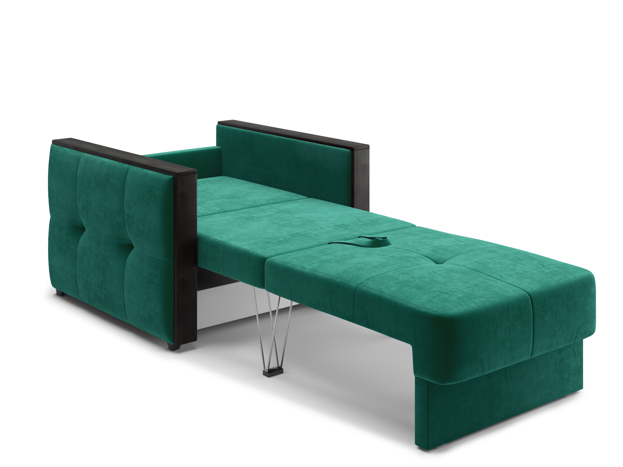 - Механизм раскладки трёхсекционная еврокнижка. В отличие от еврокнижки, спальное место у такого дивана образуется поперёк, а не вдоль сидячего места и состоит из трёх частей. Благодаря такой конструкции габариты дивана в ширину могут быть значительно меньше, чем у еврокнижки, что актуально при планировании расстановки мебели в зависимости от размеров помещения. Под сиденьем дивана находится короб для хранения вещей и постельных принадлежностей.
