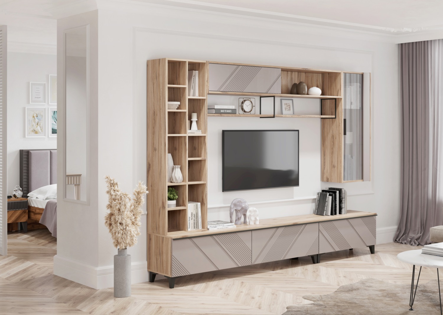 Цвет: ЛДСП Дуб Альпийский, МДФ Ясень Грей Софт