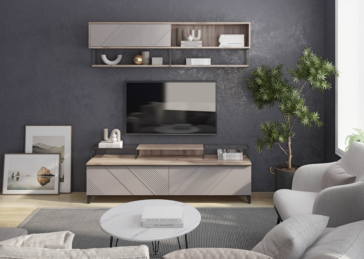 Полка крепится с помощью металлических кронштейнов, окрашенных в цвет антрацит муар.