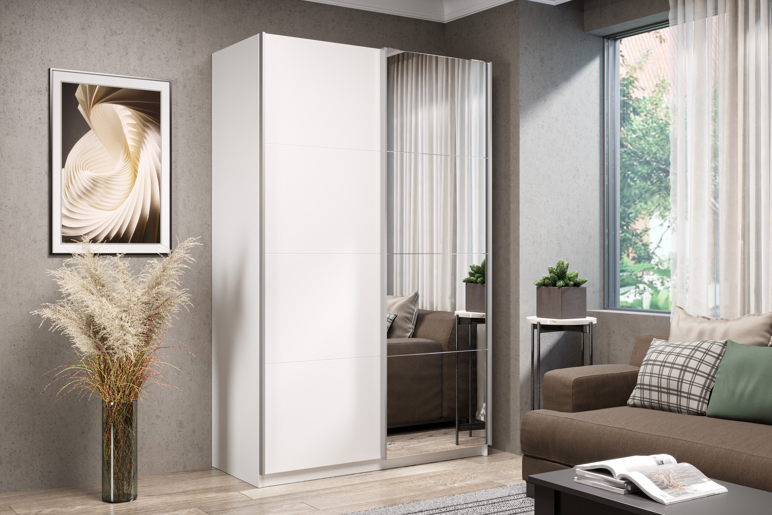 Шкаф-купе Smart 1222 2х дверный (фасады ЛДСП,зеркало) профиль серебро (Белый) Код I0000411222