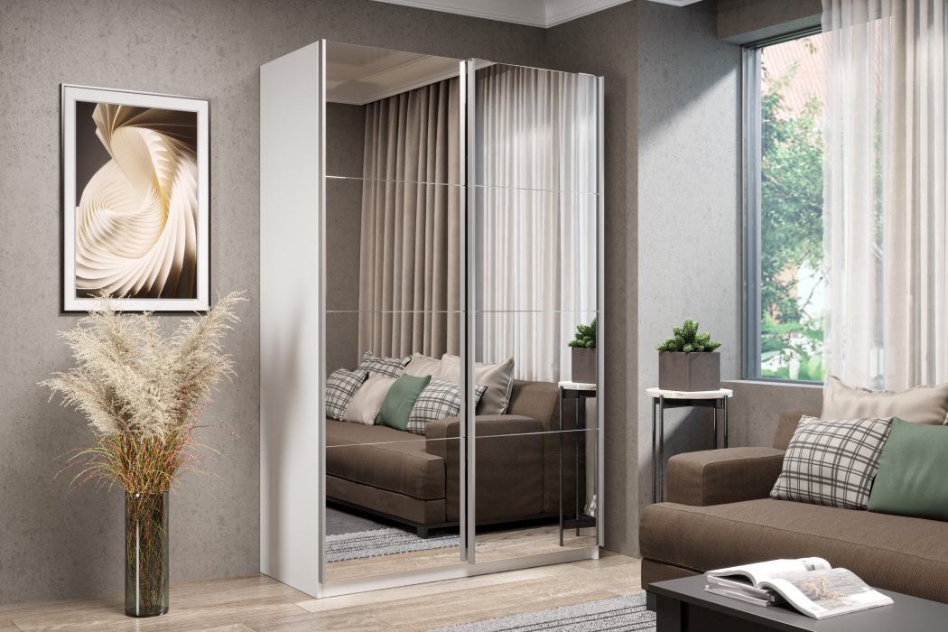 Шкаф-купе Smart 1422 2х дверный (фасады зеркало) профиль серебро (Белый)