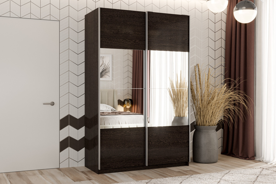 Шкаф-купе Smart 1424 2х дверный (фасады ЛДСП/зеркало) профиль серебро (Венге)