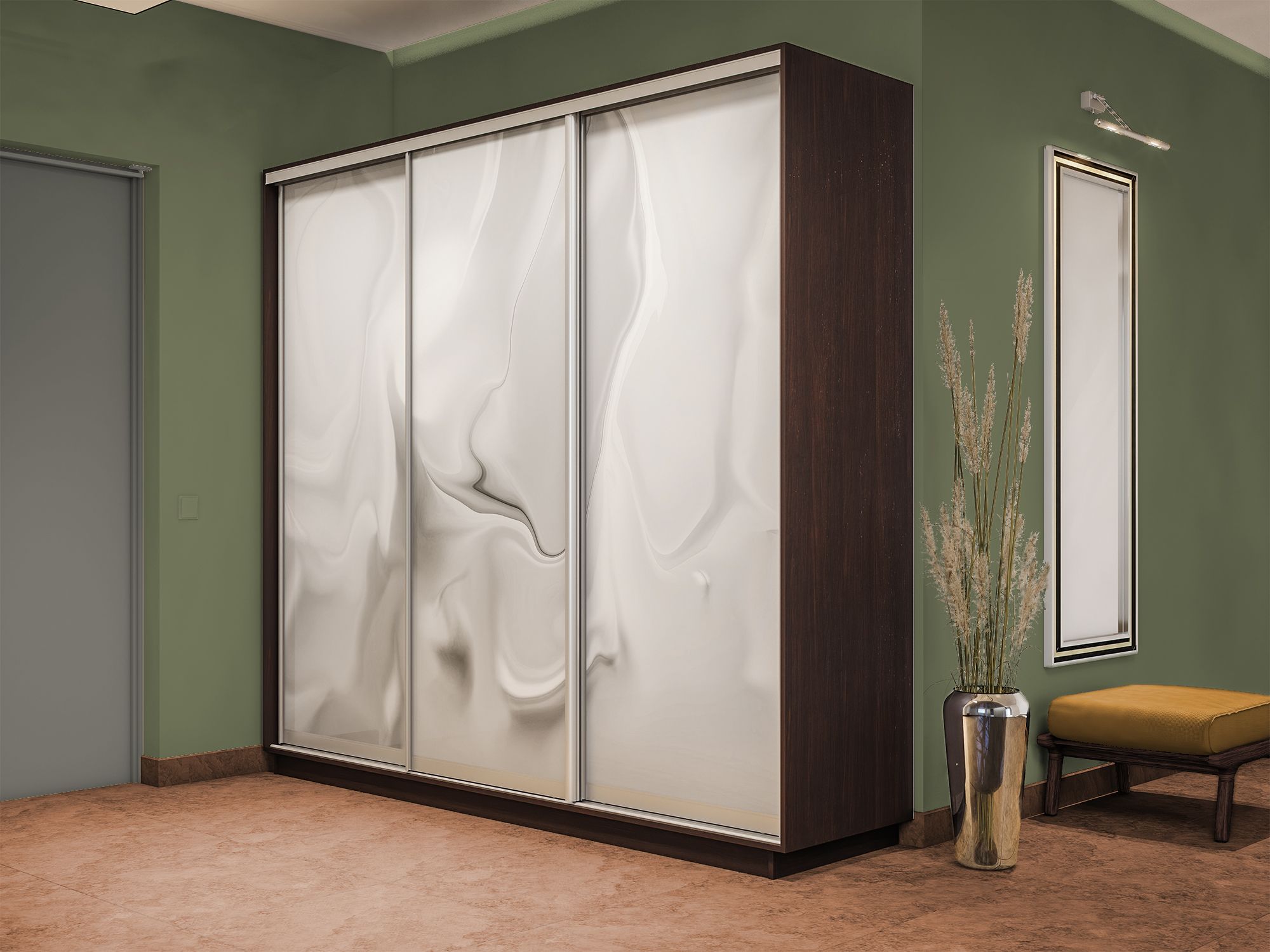 Шкаф-купе Экспресс 3-х дверный Фотопечать Шелк Стекла 240х45х220 (Венге)