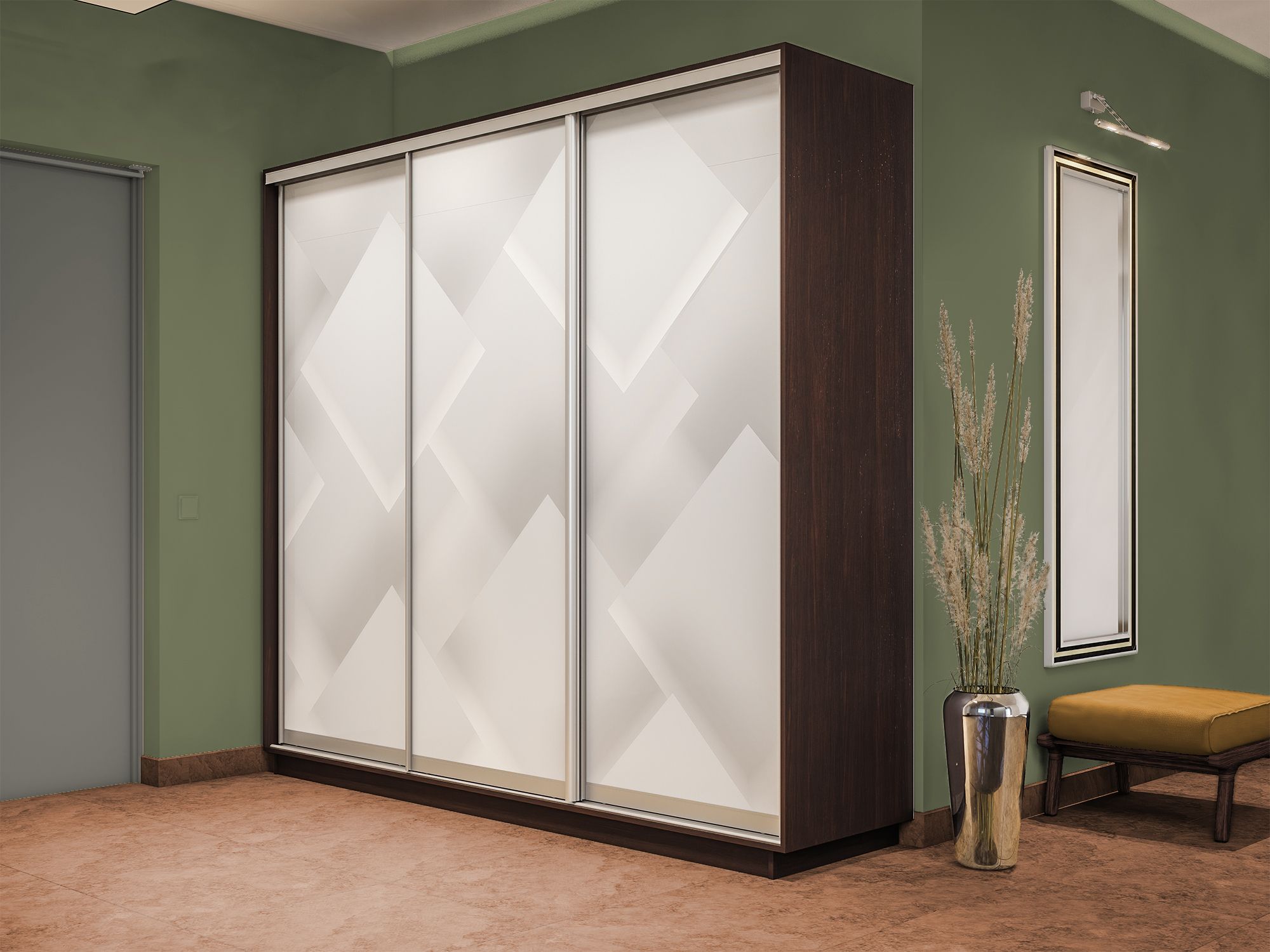 Шкаф-купе Экспресс 3-х дверный Фотопечать Квадрат Стекла 240х60х240 (Венге)