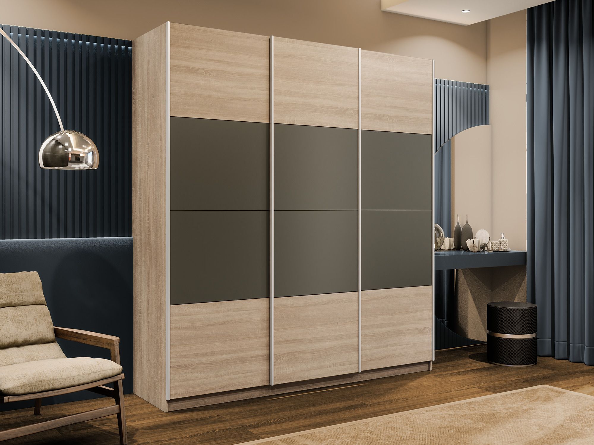 Шкаф-купе Эста 3-х дверный ДСП/Стекла хаки/Доводчик 240х66х240 (Дуб Бардолино)