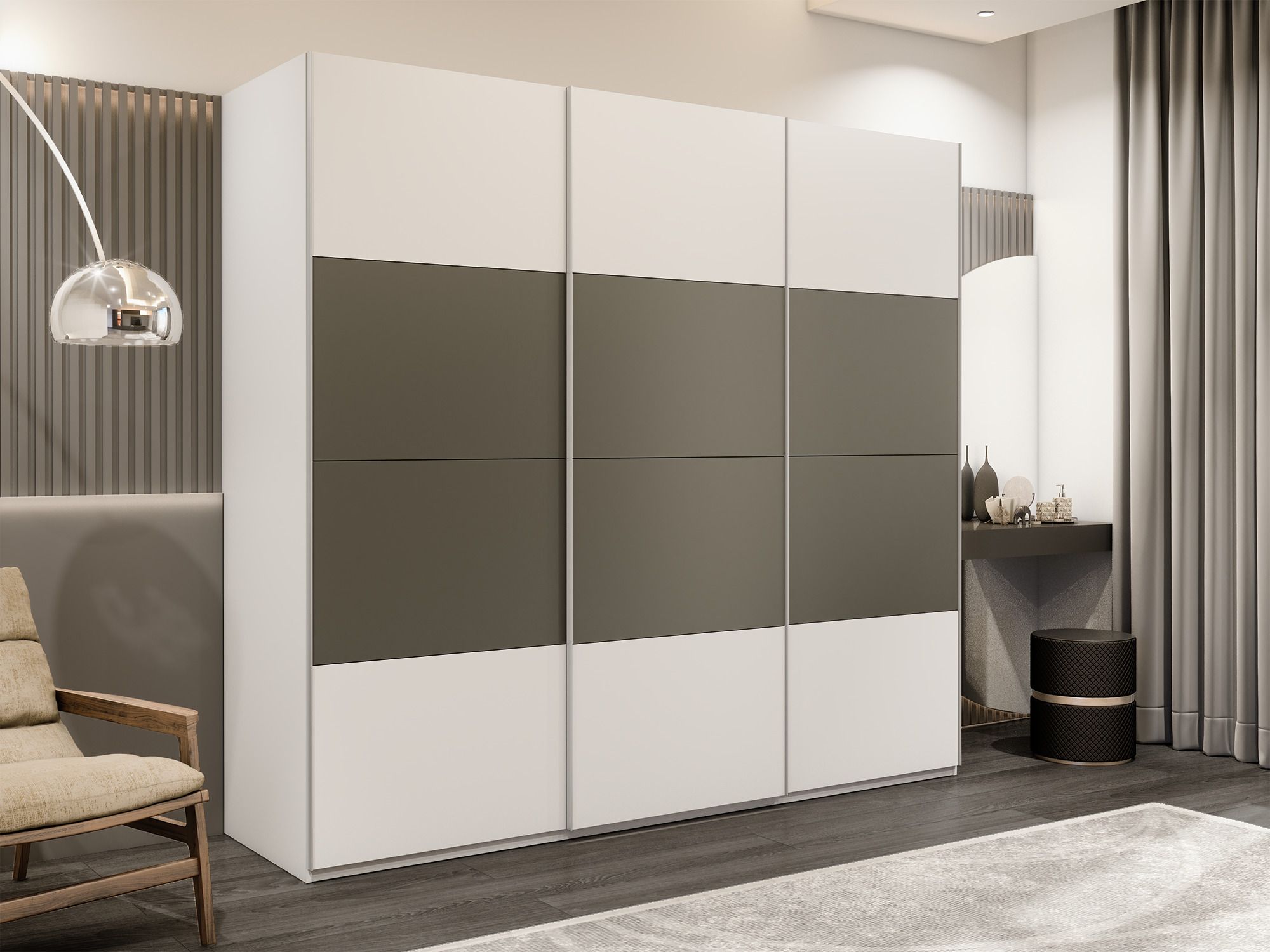 Шкаф-купе Эста 3-х дверный ДСП/Стекла хаки/Доводчик 270х66х240 (Белый)