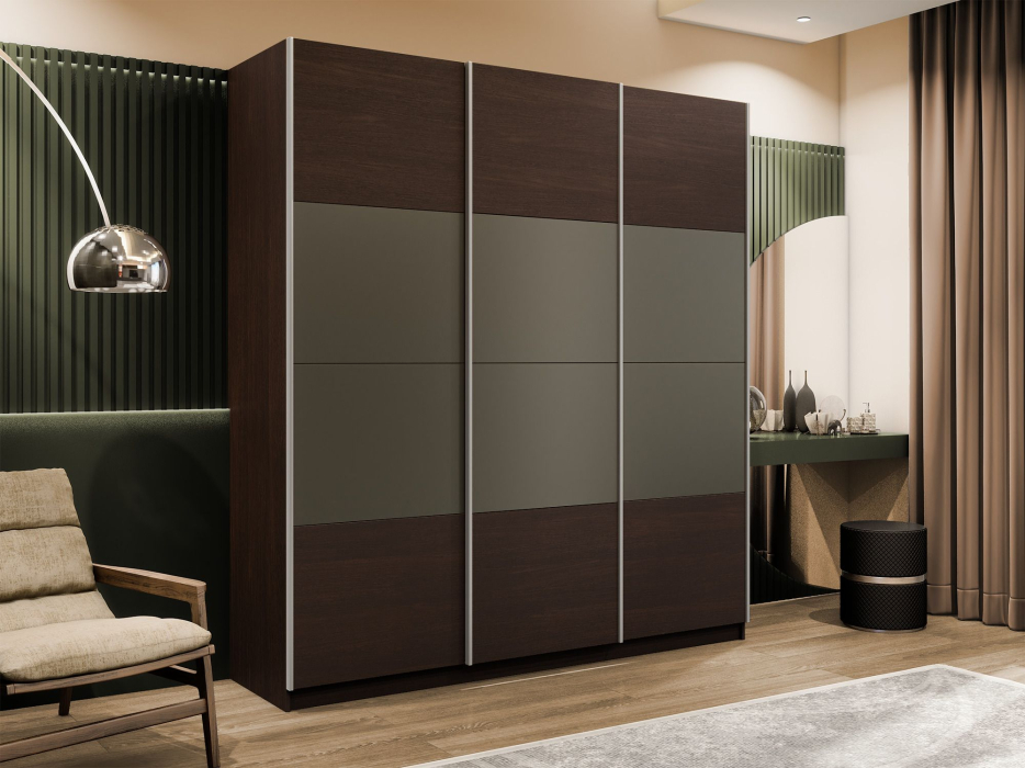 Шкаф-купе Эста 3-х дверный ДСП/Стекла хаки/Доводчик 300х66х240 (Венге мали)