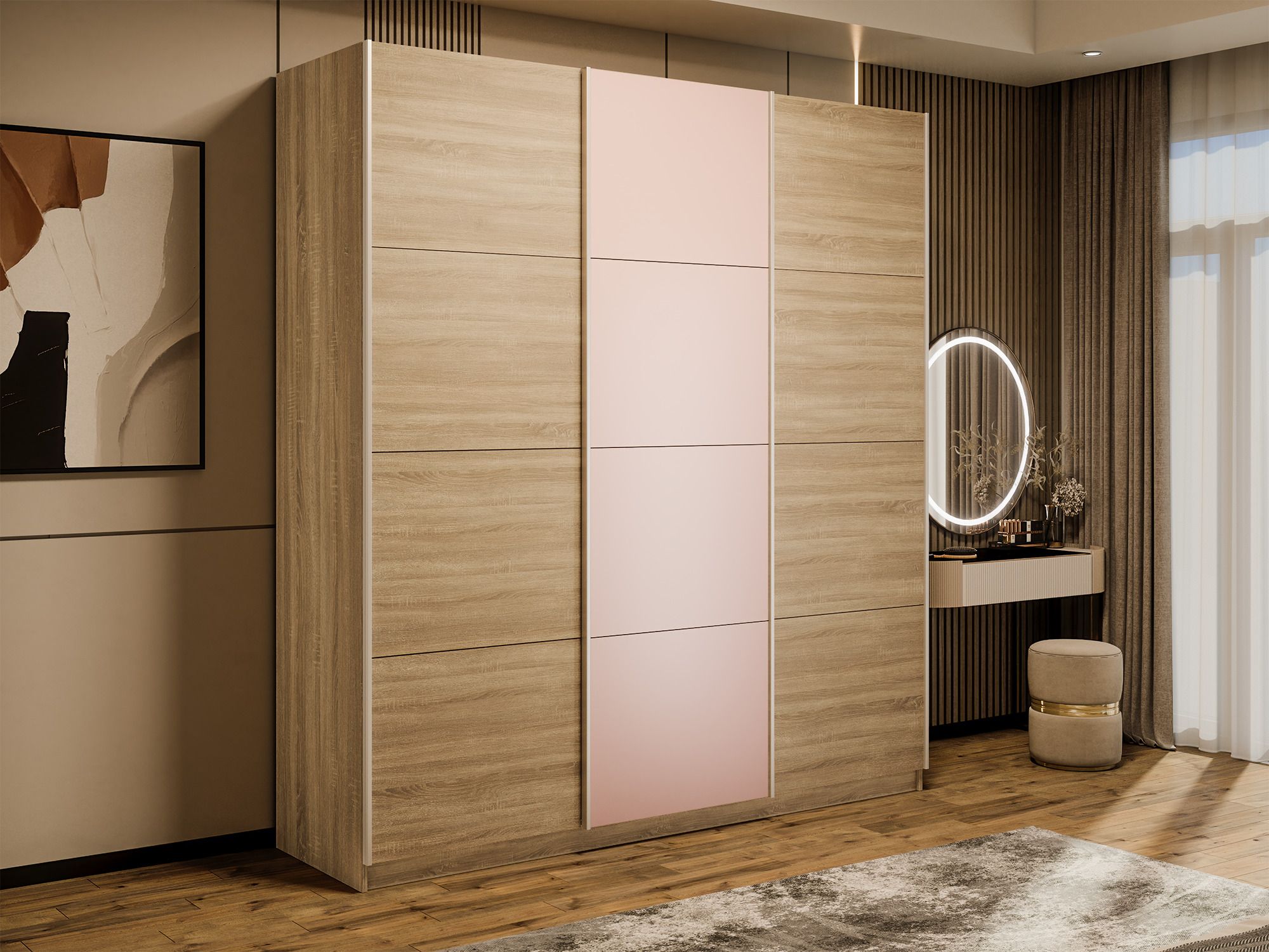 Отзывы о Столплит Шкаф-купе Эста 3-х дверный ДСП/Стекла пудра/Доводчик 270х66х240 Дуб Бардолино