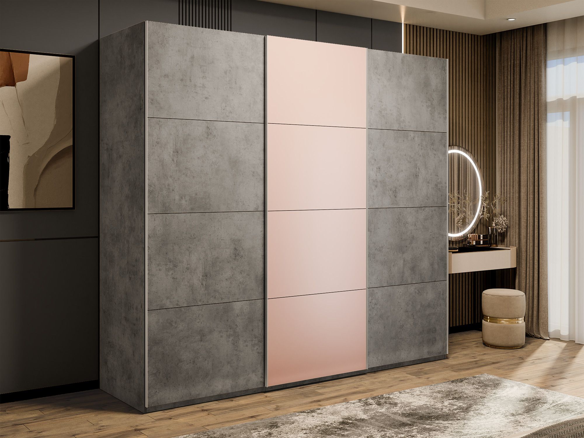 Шкаф-купе Эста 3-х дверный ДСП/Стекла пудра/Доводчик 300х66х240 (Бетон)