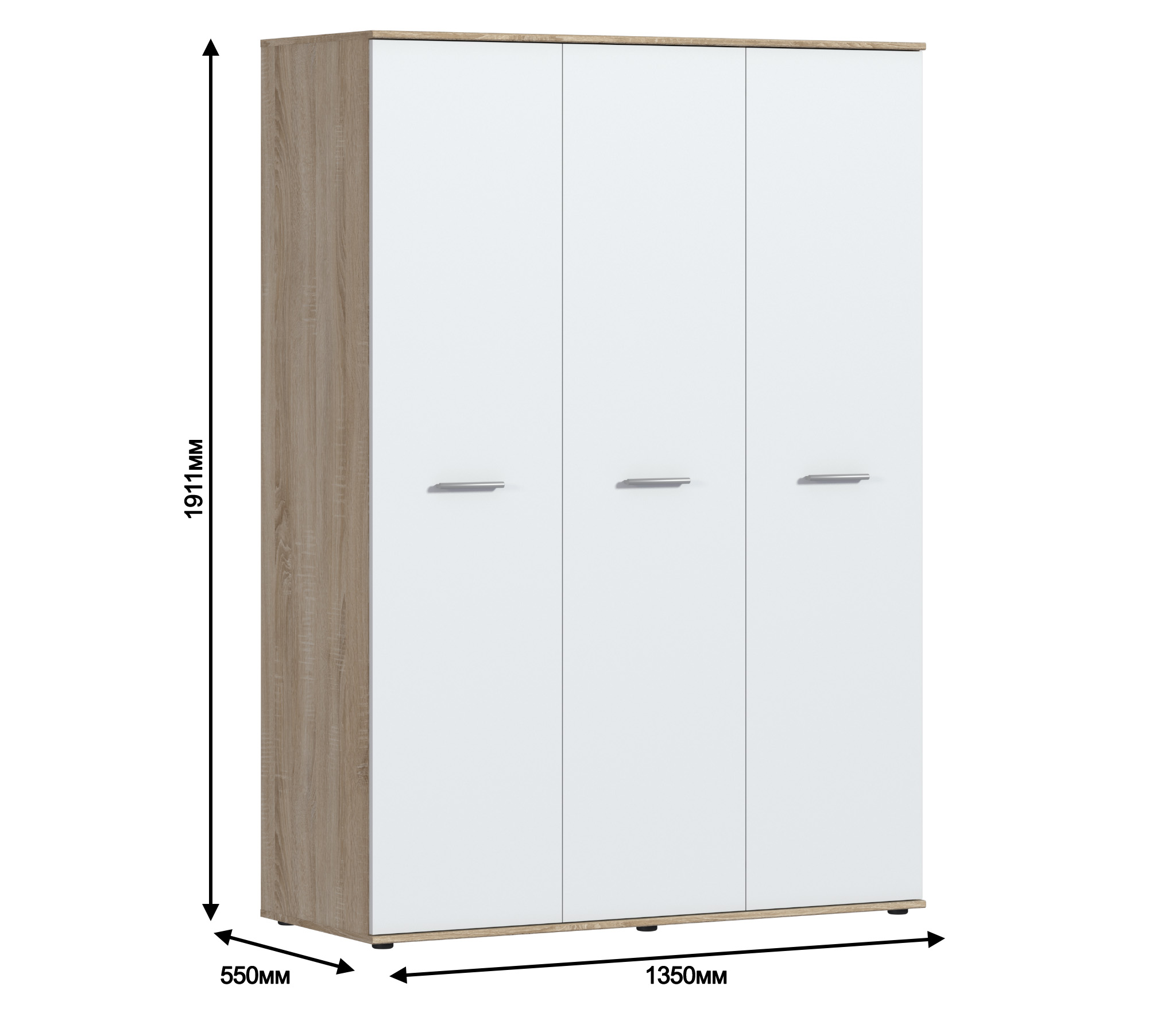 Шкаф 3-х дверный Мамбо СБ-2676 (Дуб Сонома)