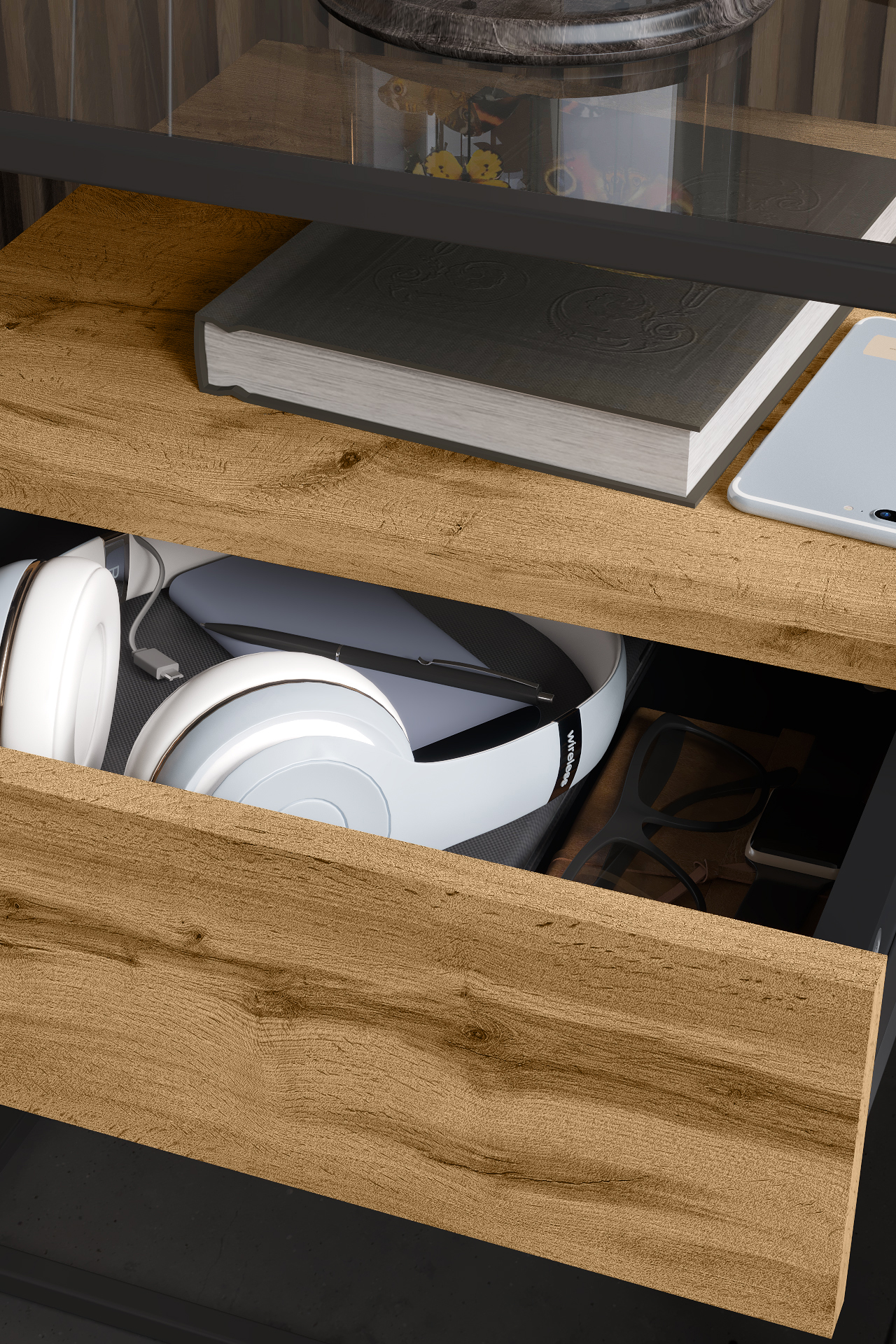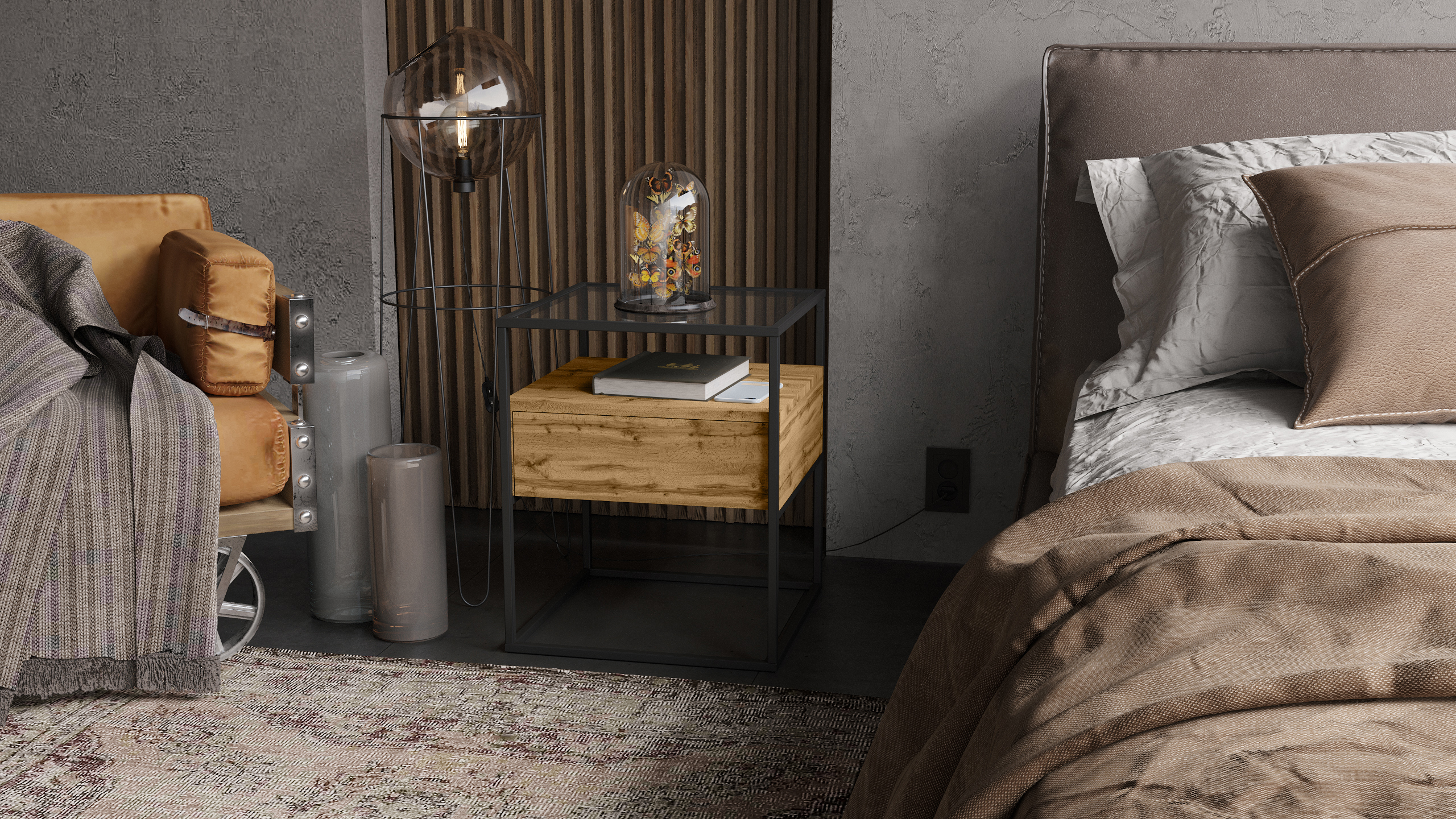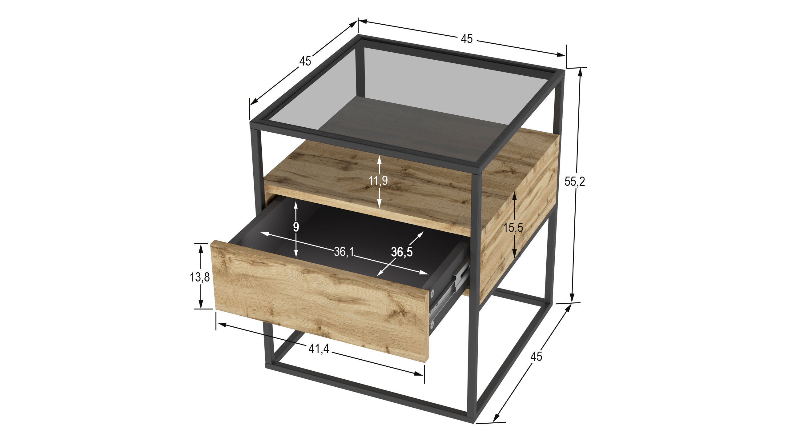 Прикроватная тумба «Эйден» выполнена в современном лаконичном стиле и уместно дополнит интерьер гостиной. Стильная тумба приковывает внимание прежде всего своим исполнением: комбинацией используемых материалов. Стеклянная столешница из тонированного закаленного стекла в сером цвете дополнена полкой и ящиком для удобного хранения подручных вещей с системой открывания PUSH-TO-OPEN. А прочный металлический каркас из профиля толщиной 15 мм обеспечивает высокую прочность и устойчивость. Цветовое решение тумбы можно выбрать из вариантов предложенных нашей фабрикой. Дизайнерский прием - возможность комбинировать с другими предметами интерьера из серии "Эйден" , позволяя воссоздать атмосферу истинного комфорта и удобства.