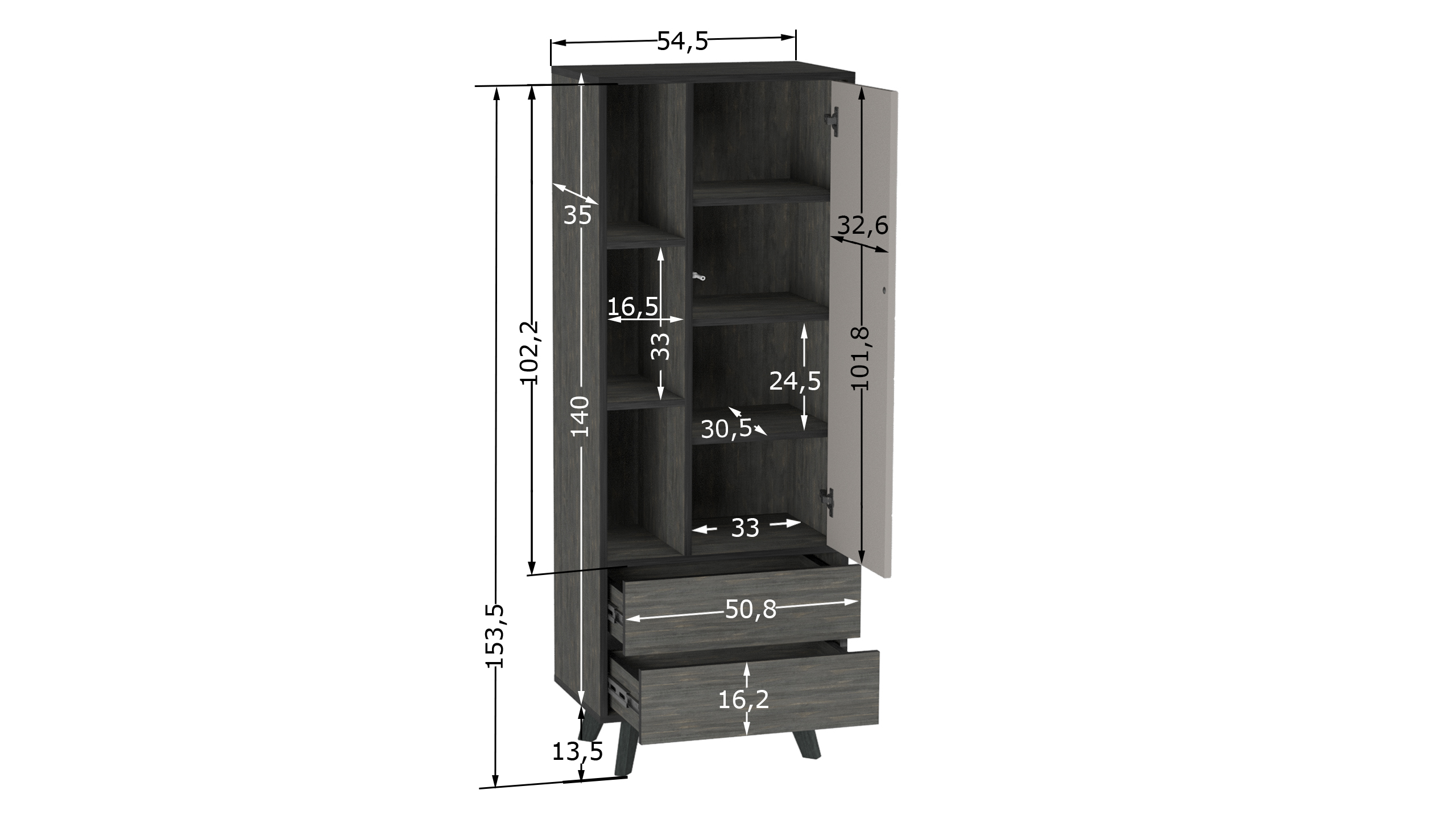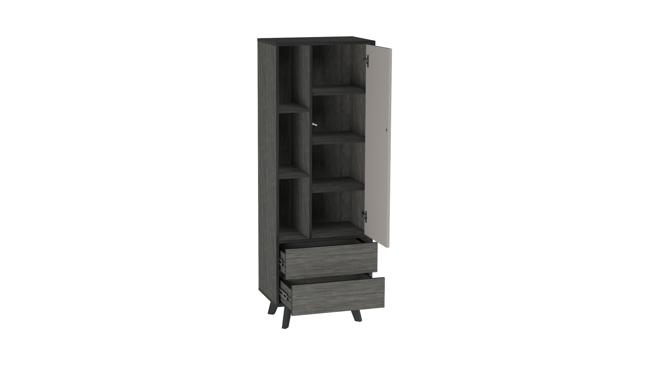 Шкаф выполнен из высококачественных материалов, что гарантирует его долговечность и надежность. Современный дизайн сочетается с практичностью, предлагая достаточное количество места для хранения одежды, аксессуаров и других вещей. Внутреннее пространство шкафа Хагги S продумано до мелочей: здесь предусмотрены полки различной высоты, выдвижные ящики, что позволит вам легко организовать свои вещи.