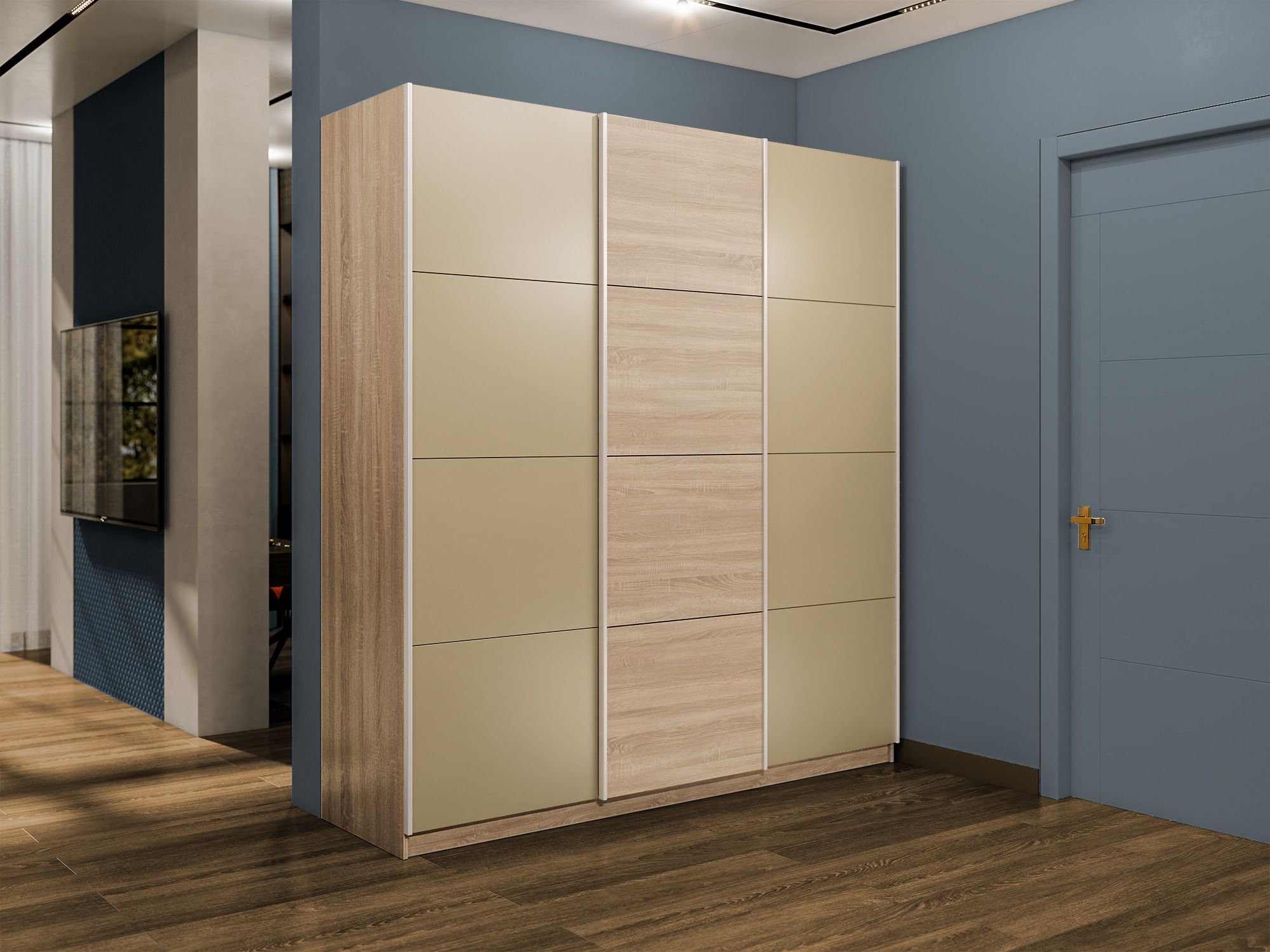 Шкаф-купе Эста 3-х дверный ДСП/Стекла фисташка/Доводчик 270х66х240 (Дуб Бардолино)