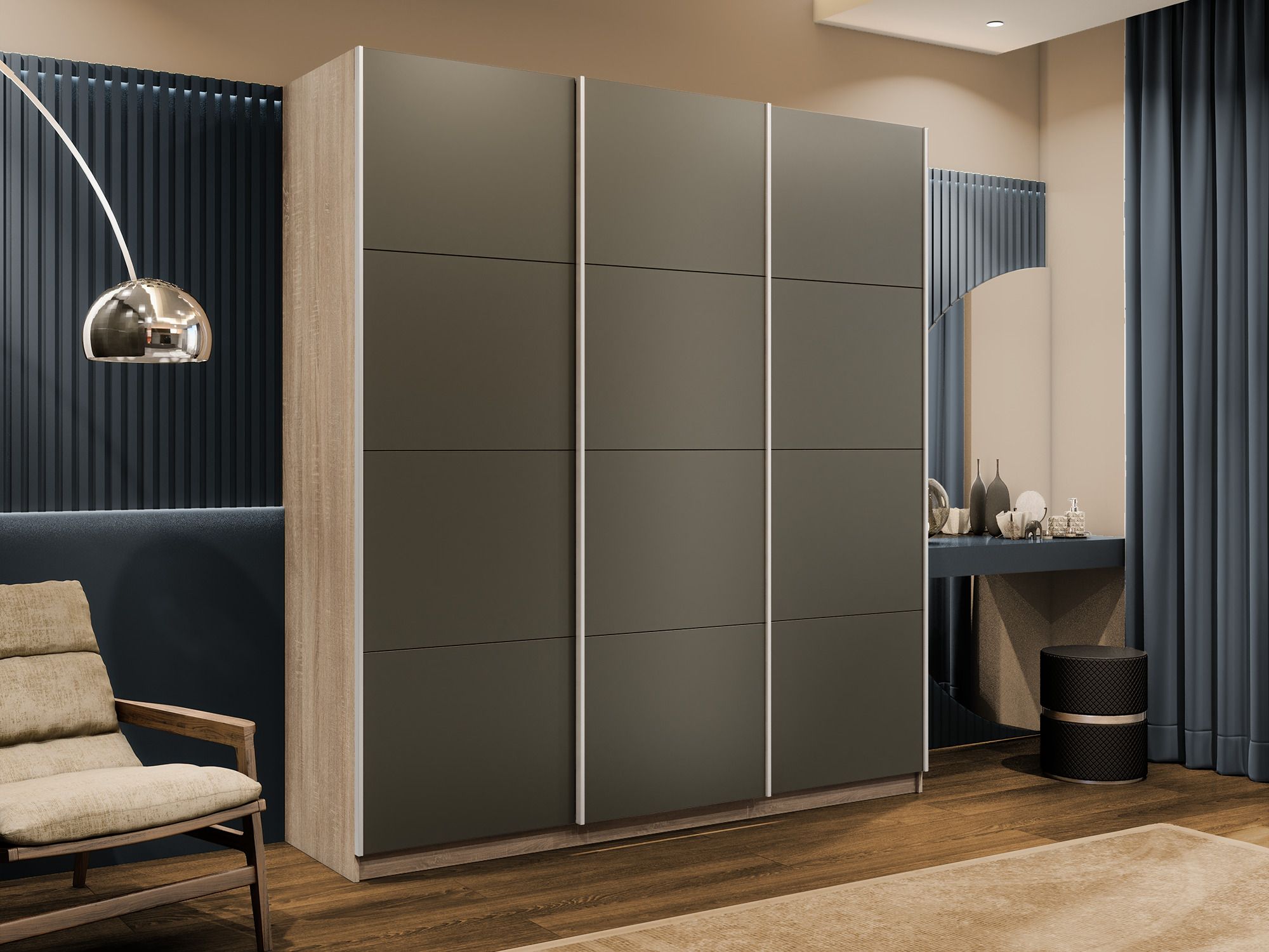 Шкаф-купе Эста 3-х дверный Стекла хаки/Доводчик 240х66х240 (Дуб Бардолино)