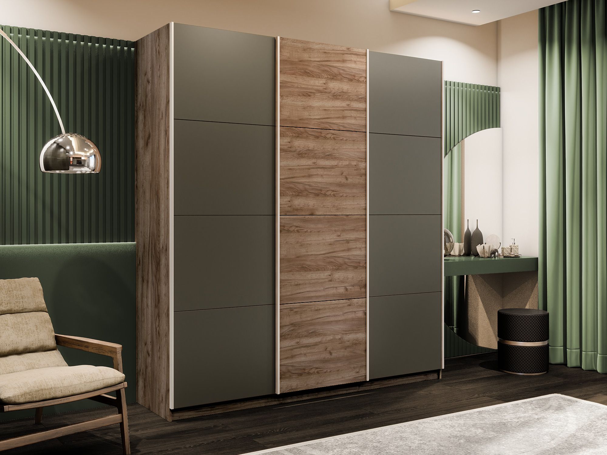 Отзывы о Столплит Шкаф-купе Эста 3-х дверный ДСП/Стекла хаки/Доводчик 240х66х240 Дуб/крафт/табак