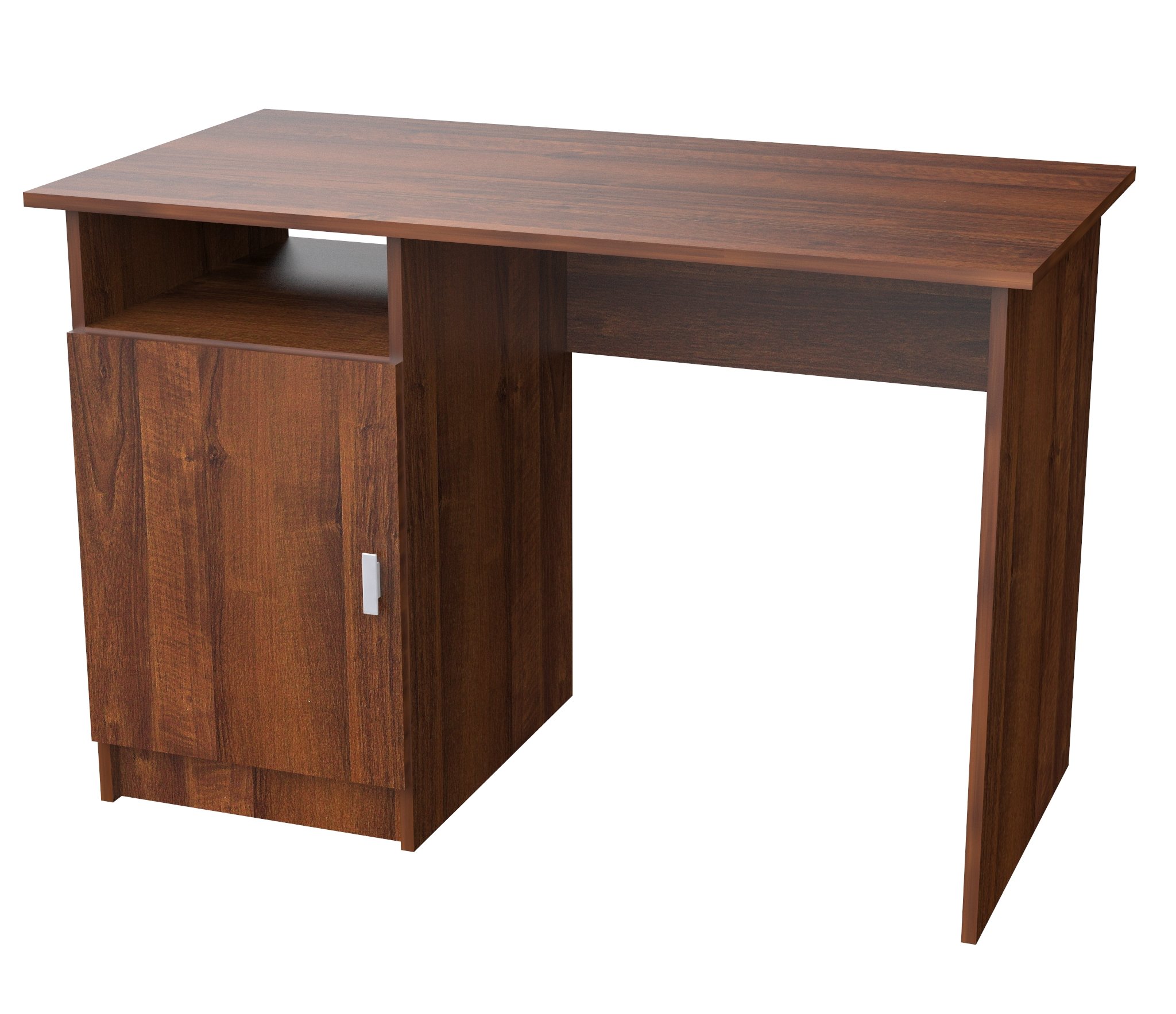 Стол СТ-1 изготовлен из ЛДСП.Оснащён тумбой с дверью,за дверцей полка съёмная).Ширина 110 см,Выс 75 см,глуб 57 см.Удобен в использовании как для кабинета,так и для школьников.