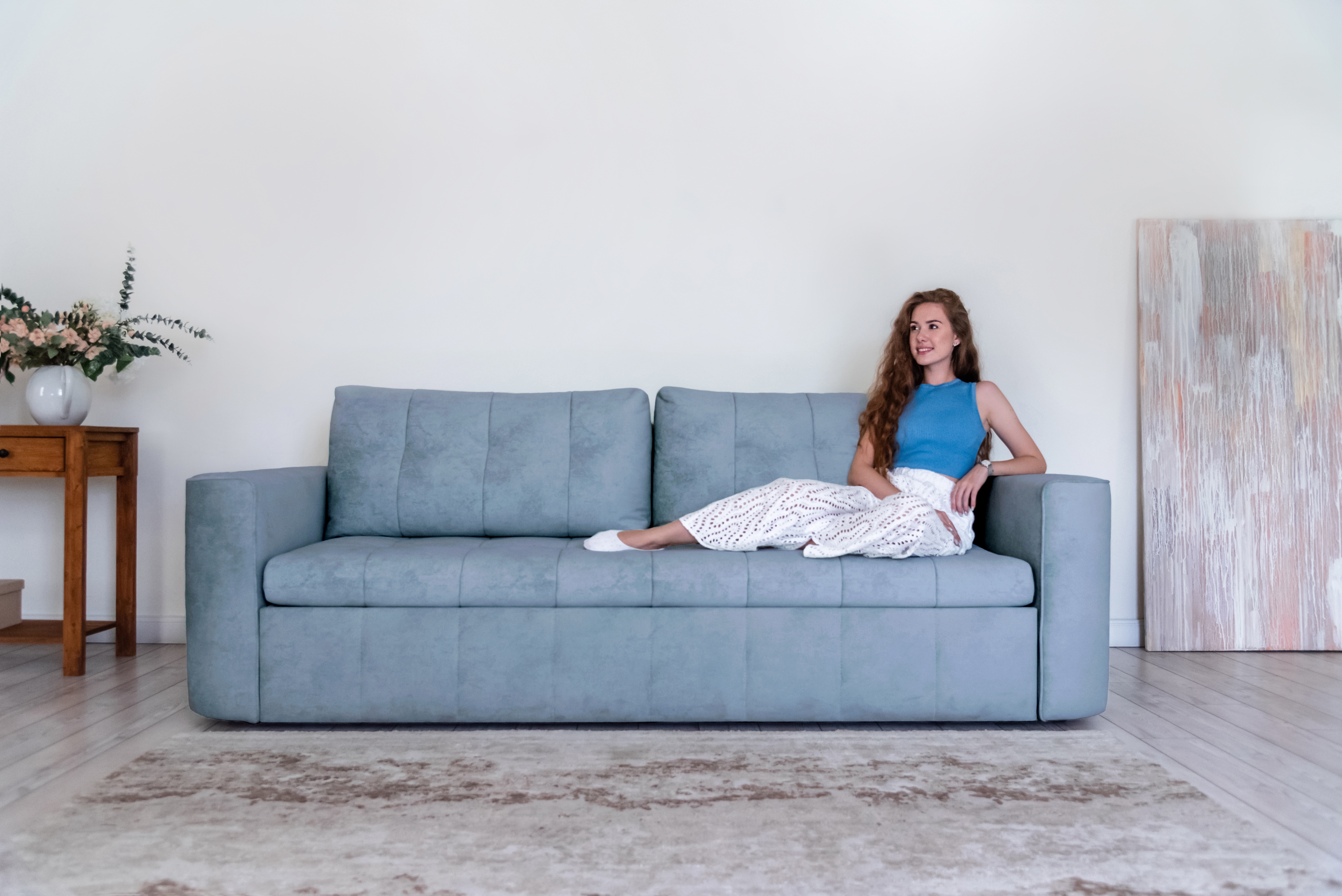 Стильный прямой диван BOSTON создан для тех, кому важна практичность и комфорт: надежный металлокаркас, мягкие ткани и быстрая трансформация в спальное место! Спинка защищает от соприкосновения со стеной во время сна.