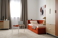 Односпальная кровать-тахта Марвел 90 с мягкой обвикой в терракотовом оттенке — прекрасное решение для современной и яркой комнаты для подростка или ребенка.