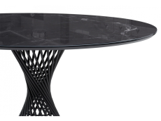 Обеденный стол Вивиен с круглой столешницей 90см, рисунок столешницы имитация мрамор. Основание из металла в черном цвете, оригинльной формы украсит интерьер.