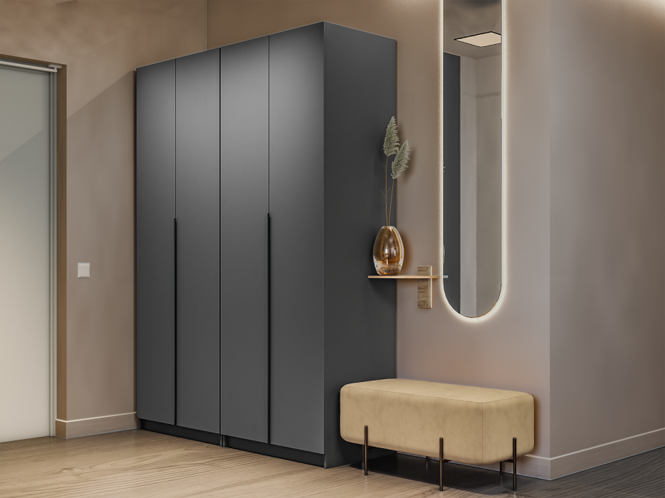 Идеально подойдет не только к вашему спальному гарнитуру, прихожей и детской, но и будет гармонично сочетаться со всеми элементами мебели. Не займет много места, но позволит вместить большое количество вещей. Внутреннее наполнение шкафа позволяет вместить не только верхнюю одежду и обувь, но и аксессуары. А удобное разделение секций поможет грамотно разместить все вещи в шкафу.