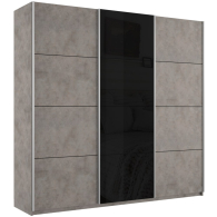 Шкаф-купе Прайм 3-х дверный ДСП/Стекло черное/Доводчики 210х57х230 (бетон)