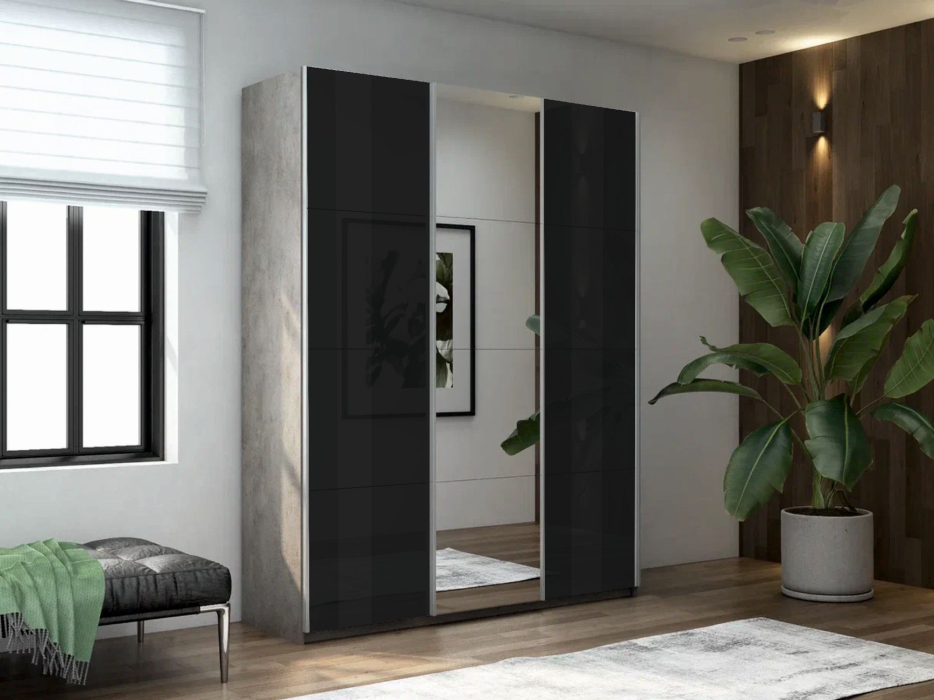 Шкаф-купе Прайм 3-х дверный Стекла черные/Зеркало/Доводчики 180х57х230 (бетон)