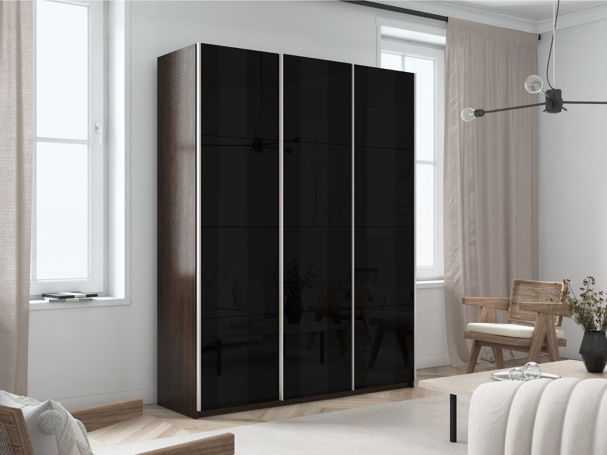 Шкаф-купе Прайм 3-х дверный Стекла черные/Доводчики 180х57х230 (Венге)