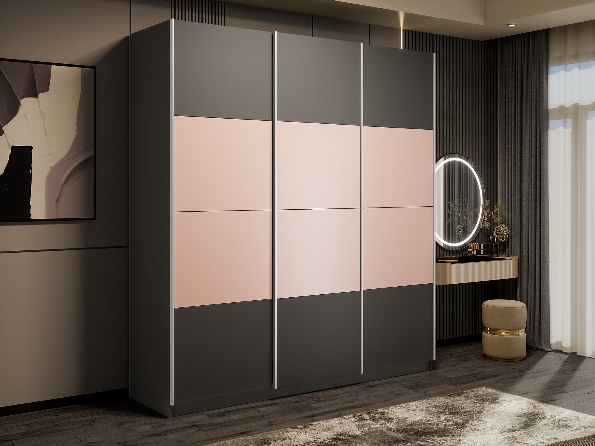 Шкаф-купе Эста 3-х дверный ДСП/Стекла пудра/Доводчик 300х66х240 (Диамант серый)