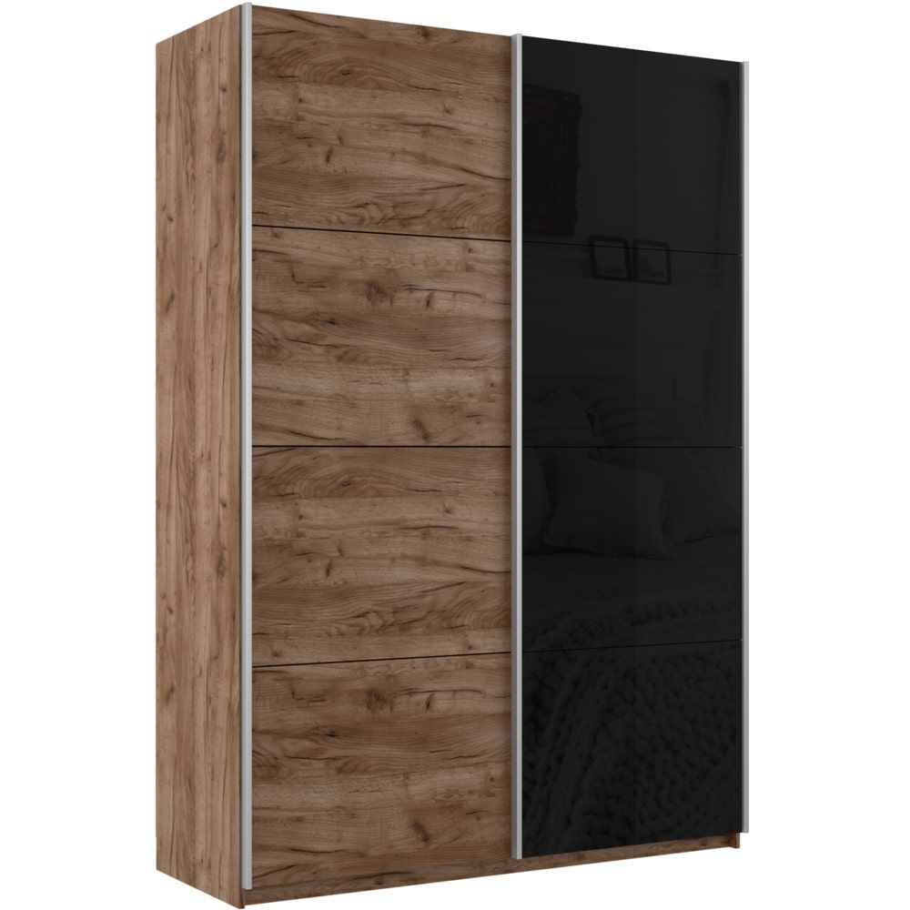 Шкаф-купе Прайм 2х дверный ДСП/Стекло черное 120х57х230 (Дуб/крафт/табак)