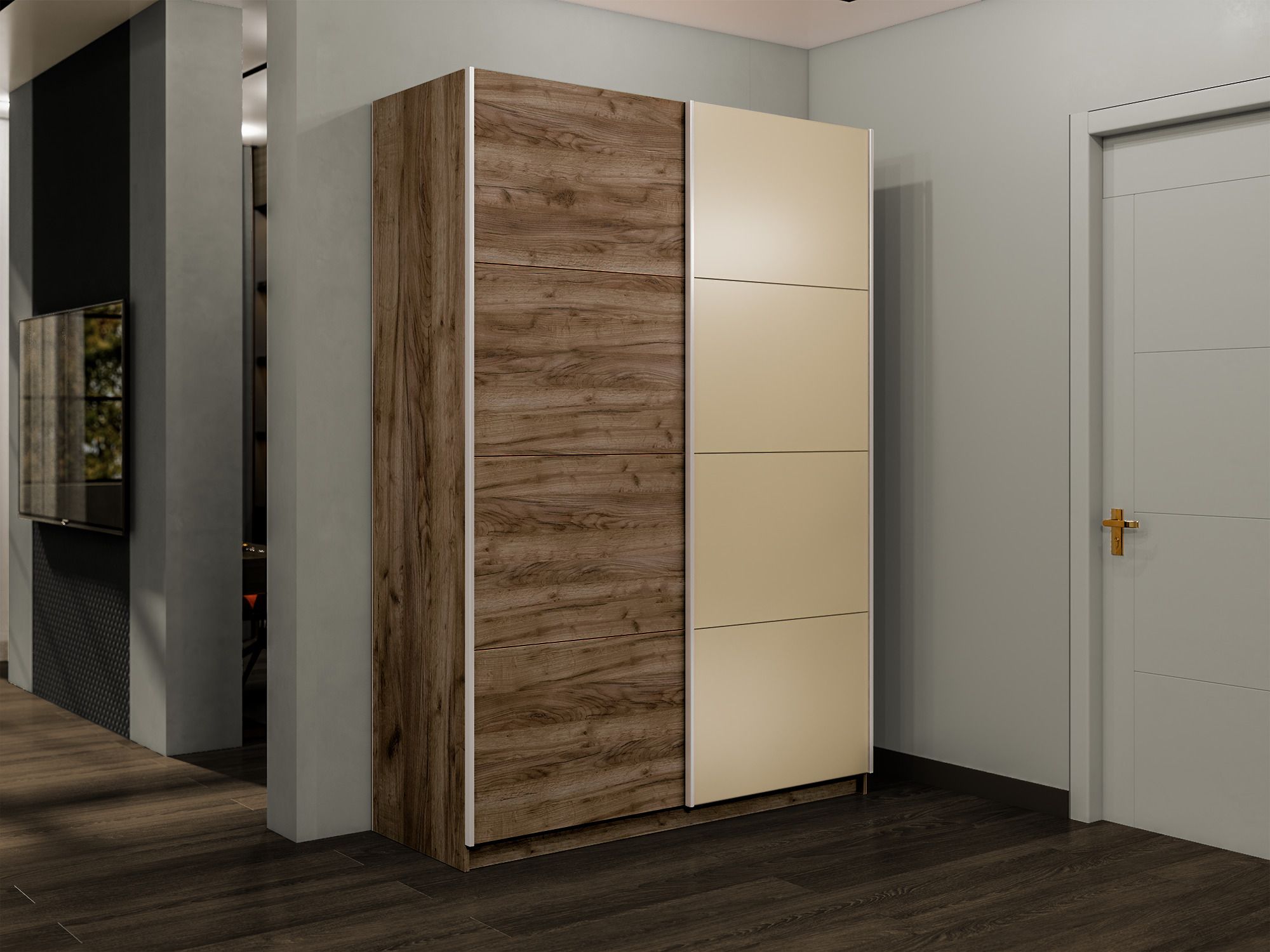 Серия «Прайм» – это шкафы-купе для одежды с эстетичным и изысканным внешним видом, который достигается благодаря применению навесной системы крепления дверей-купе Hettich Top Line M со скрытым верхним ходовым профилем, данная система обеспечивает плавный ход фасадов. Каждая дверь поделена на 4 секции, которые можно устанавливать в произвольном порядке, создавая каждый раз новый дизайн фасада. Идеально подойдет не только к вашему спальному гарнитуру, прихожей и детской, но и будет гармонично сочетаться со всеми элементами мебели. Не займет много места, но позволит вместить большое количество вещей. Внутреннее наполнение шкафа позволяет вместить не только верхнюю одежду и обувь, но и аксессуары. А удобное разделение секций поможет грамотно разместить все вещи в шкафу. В шкафу-купе «Прайм» используется высококачественная фурнитура немецкого концерна Hettich, это обеспечит вам комфортное и долгое использование гардероба.