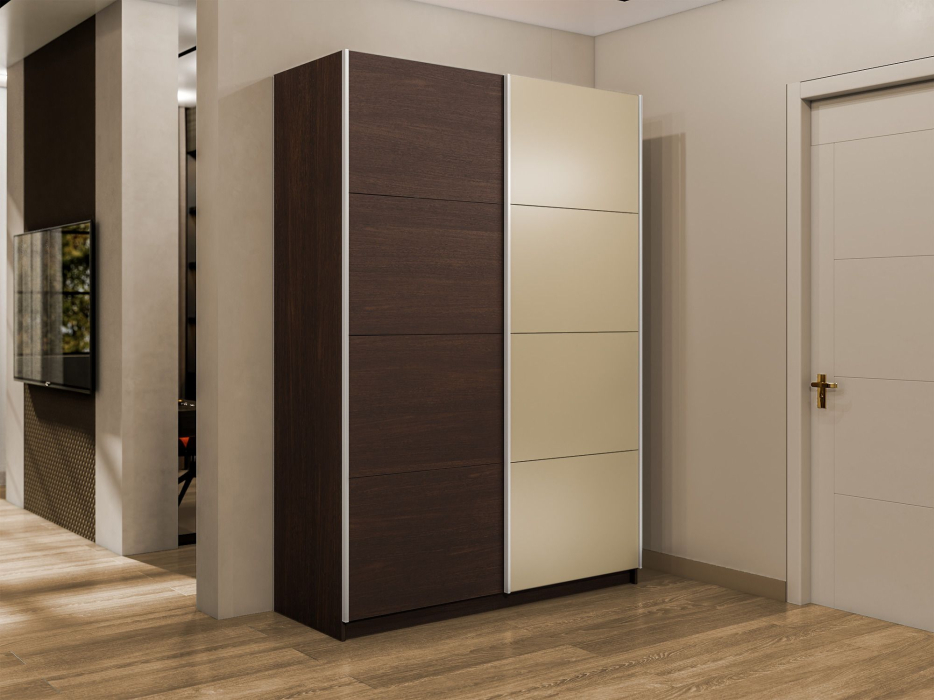 Шкаф-купе Прайм 2-х дверный ДСП/Стекло фисташка/Доводчики 160х57х230 (Венге)
