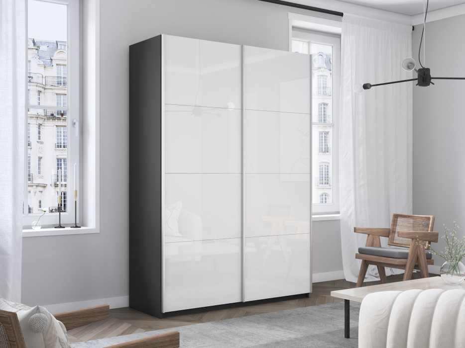 Шкаф-купе Прайм 2х дверный Белый Глянец 140х57х230 (Серый диамант)