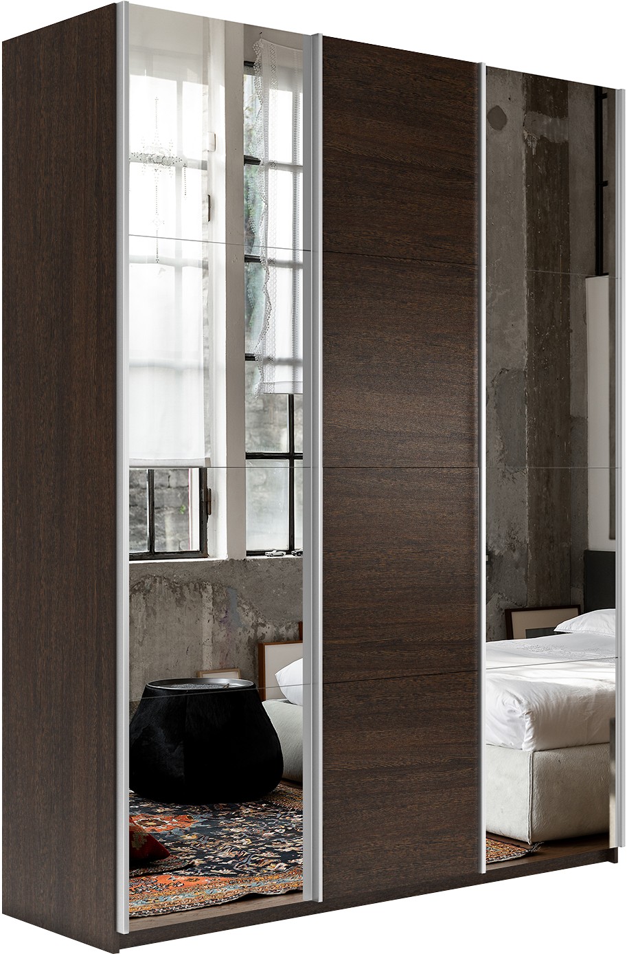 Шкаф Прайм трио 1ДСП+2 зеркало 2300х1800х570 (Венге)