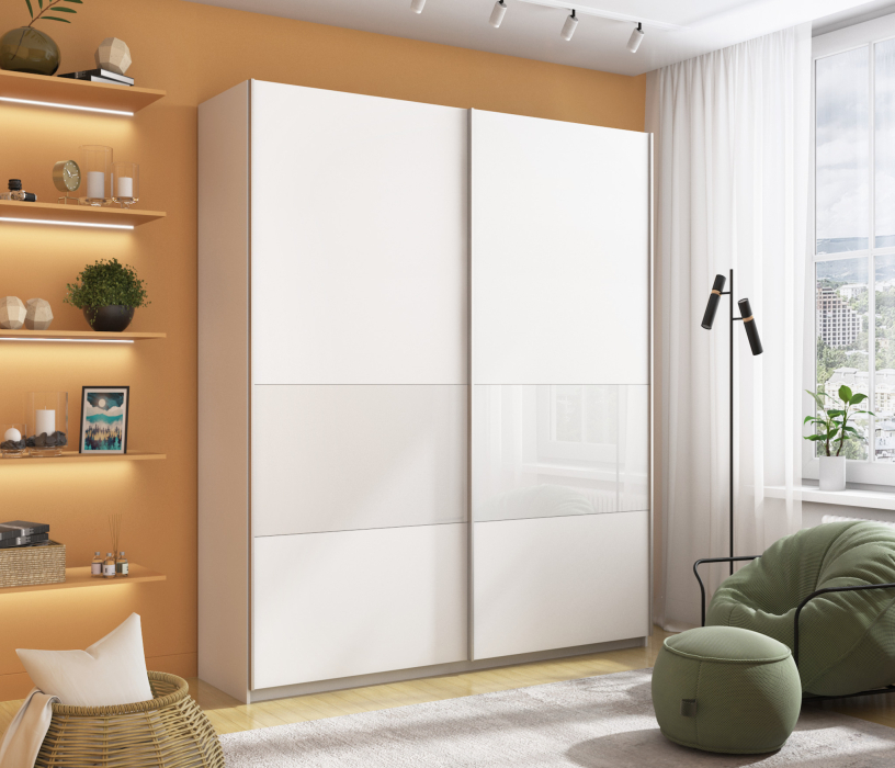 Отзывы о Столплит Шкаф-купе Прайм ДСП/Стекло белое, 220х57х230 Белый снег