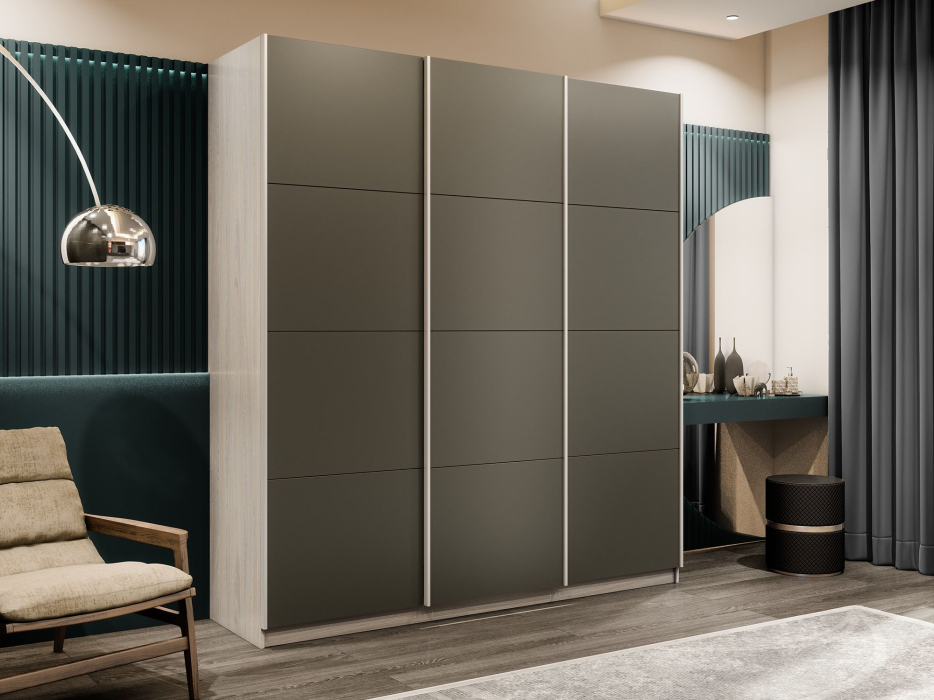 Шкаф-купе Прайм Широкий 3-х дверный Стекла хаки/Доводчики 240х57х230 (Ясень Анкор светлый)