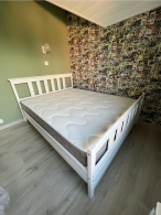 Двуспальная кровать "IRINA 2" ОЧЕНЬ КРЕПКАЯ так как усилена двойными рейками 20*90 мм по всем сторонам кровати. Благодаря 5 опорным стойкам по середине двуспальной кровати устойчивость повышена, чтобы выдерживать максимальный вес 200 кг.