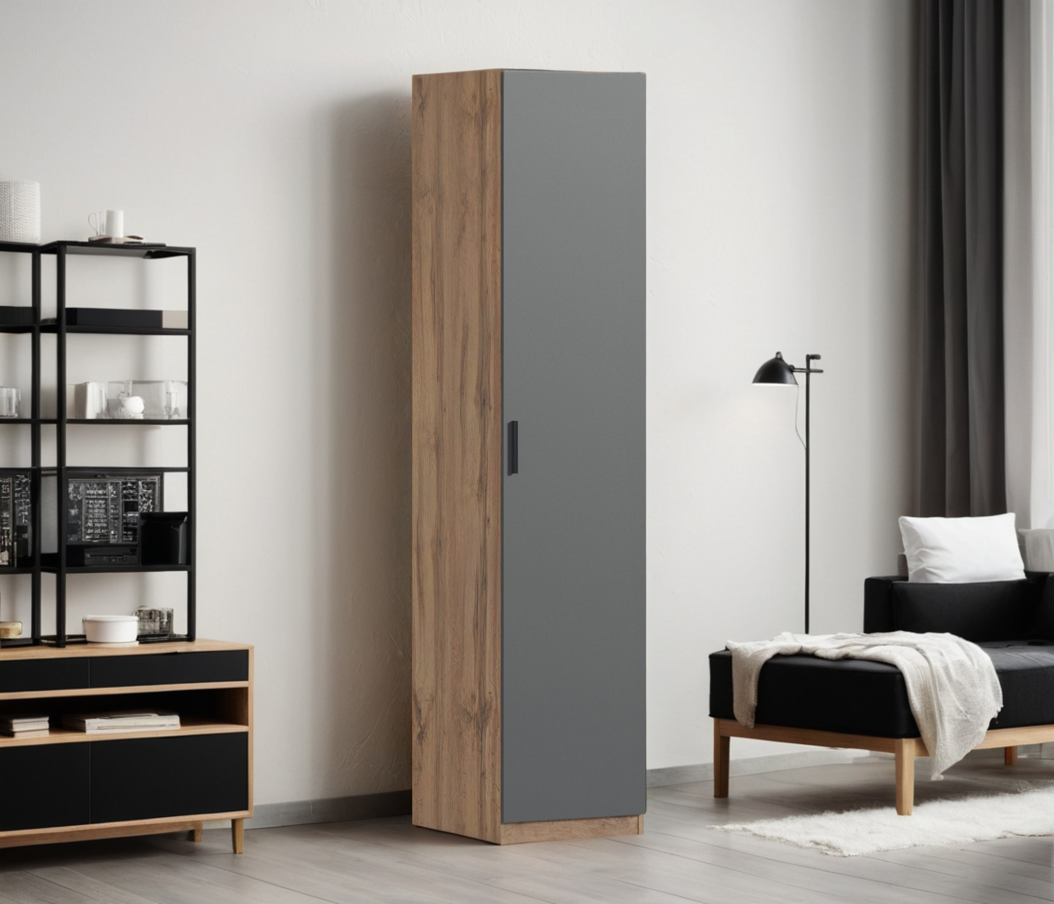 Шкаф однодверный Макс 500 мм, вариант №3 (ЛДСП, дуб вотан) (Дуб вотан/Диамант серый)