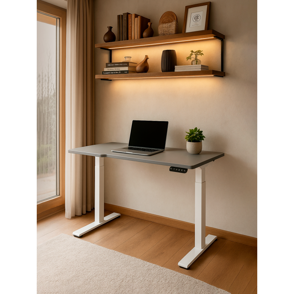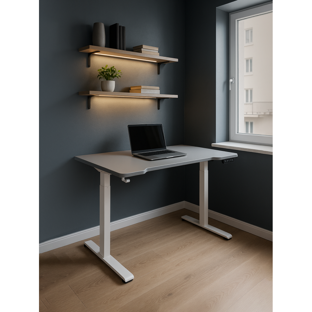 Отзывы о Столплит Компьютерный стол Маркос с механизмом подъема 140х80, белый Светло-серый