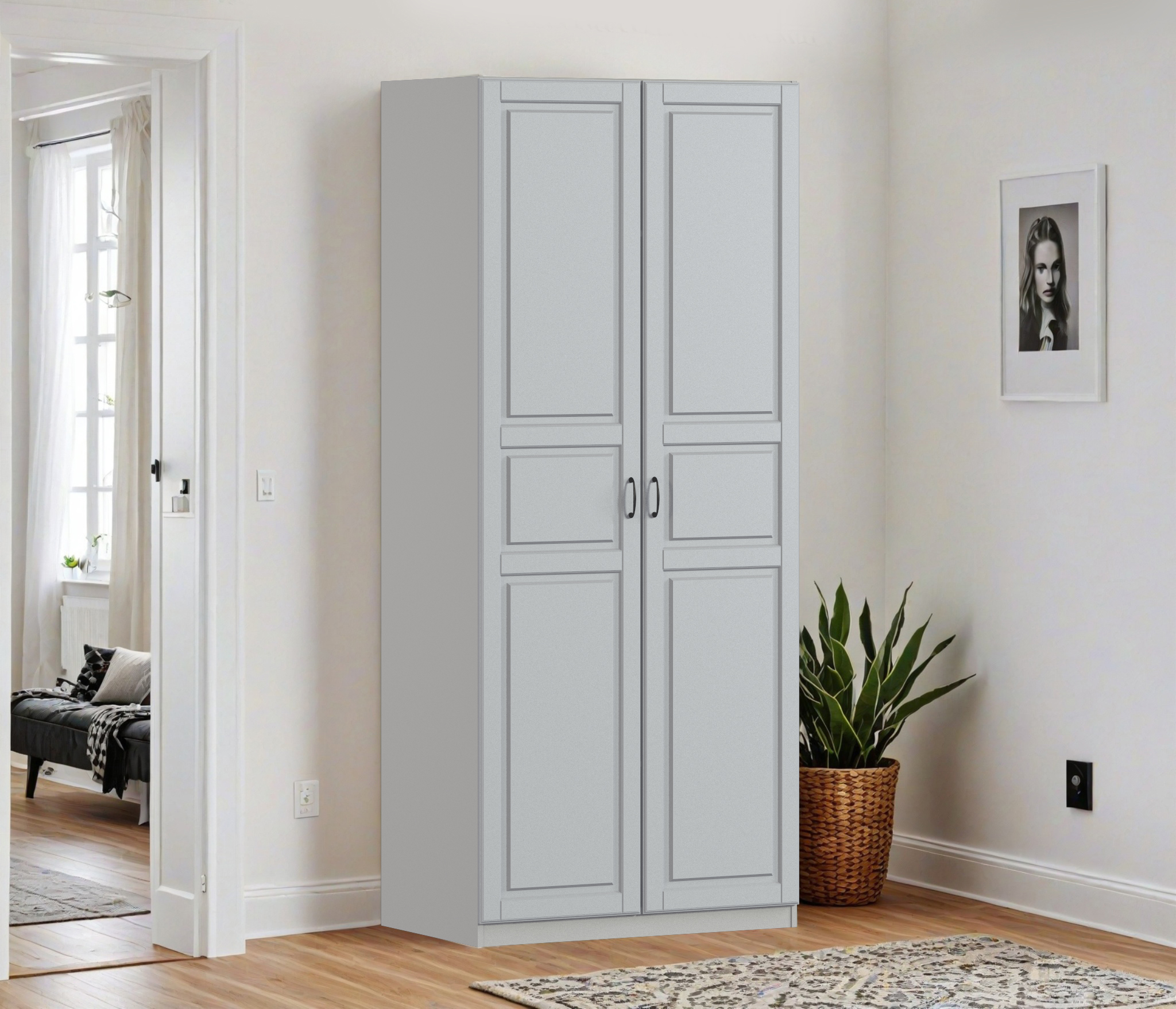Шкаф двухдверный Макс 1000 мм, вариант №1 (ЛДСП/МДФ) (Бархатно светло-серый)