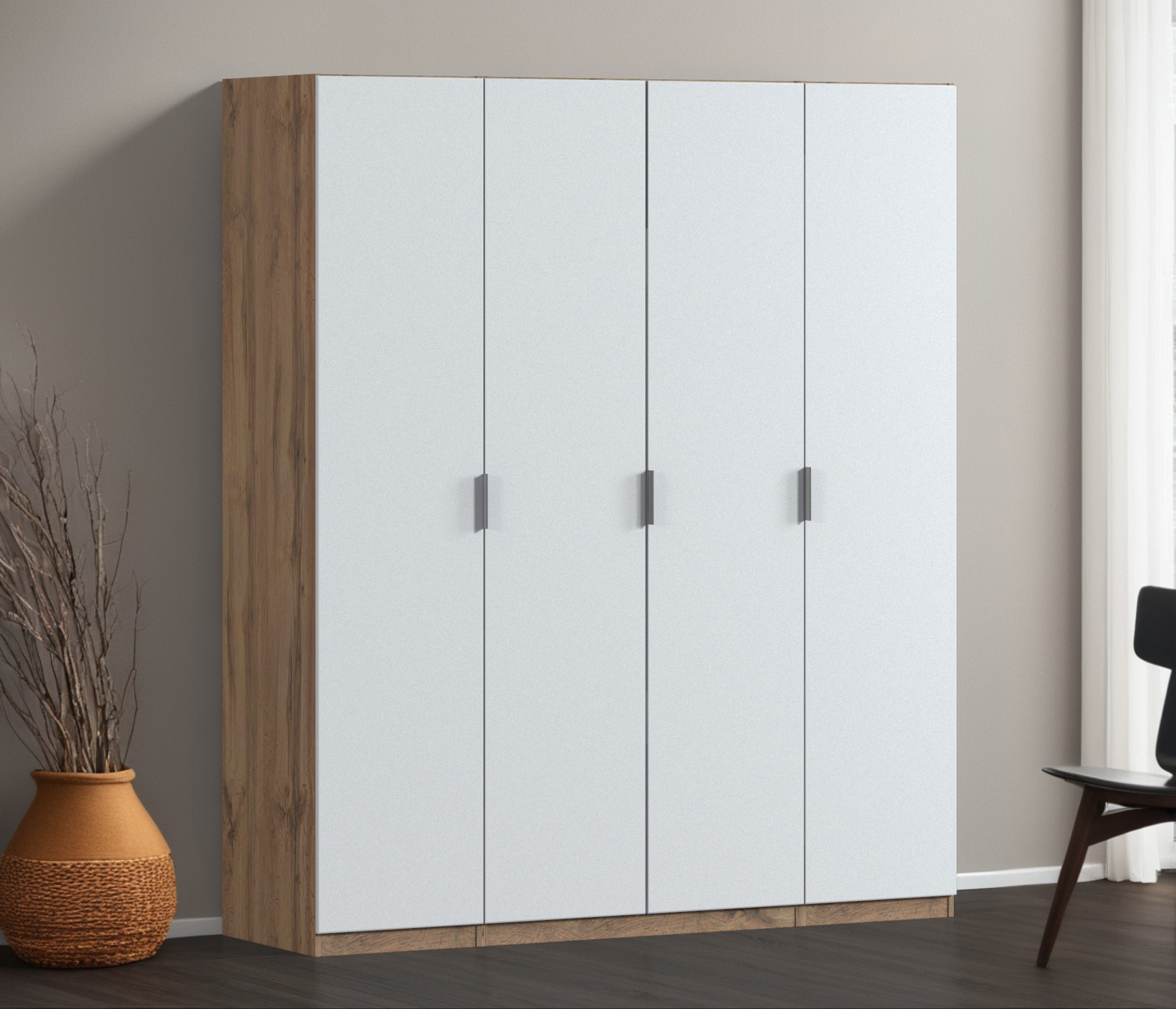 Шкаф четырехдверный Макс 2000 мм, вариант №2 (ЛДСП, корпус дуб вотан) (Белый Альпийский)