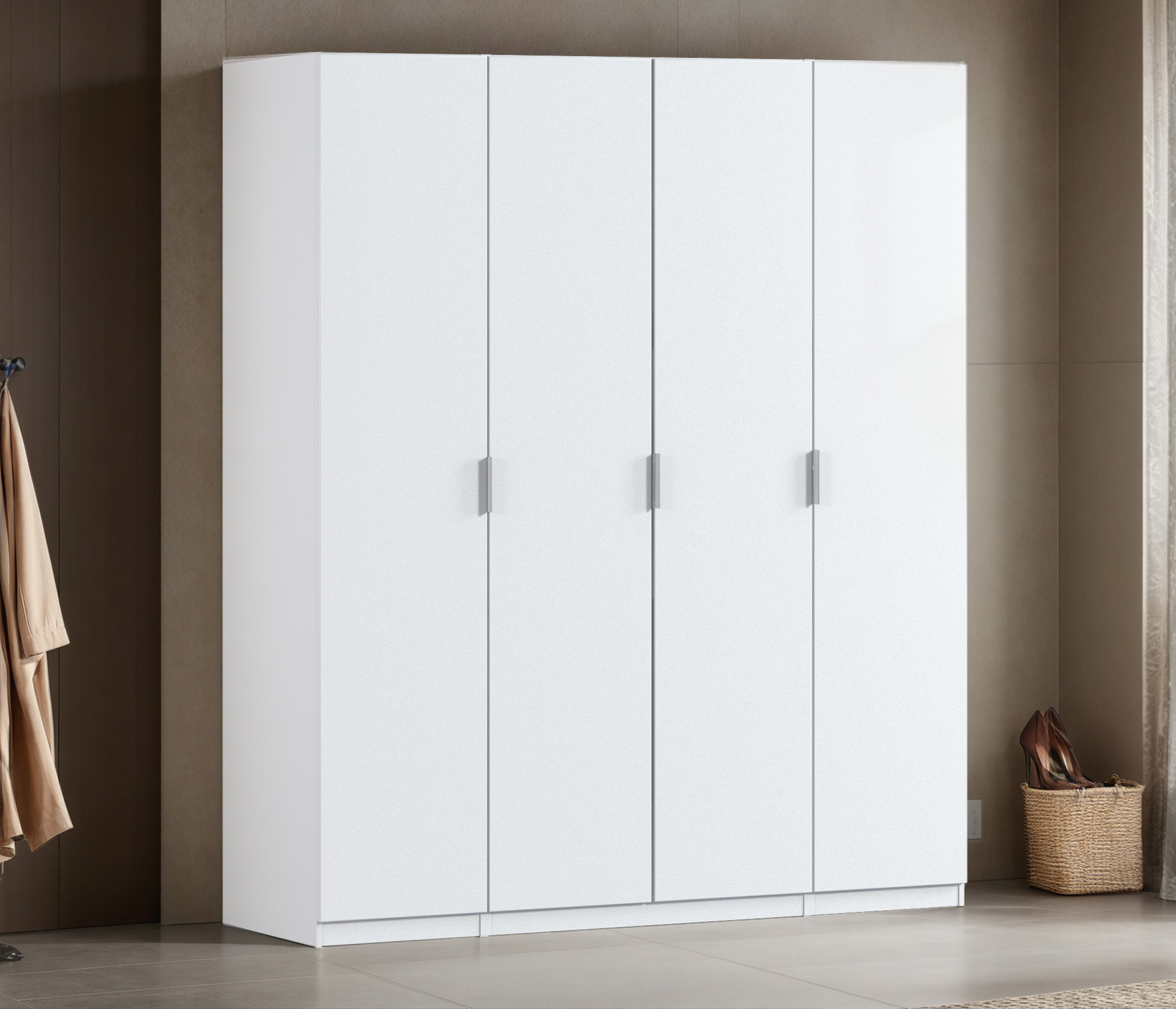 Шкаф четырехдверный Макс 2000 мм, вариант №3 (ЛДСП/МДФ) (Белый)