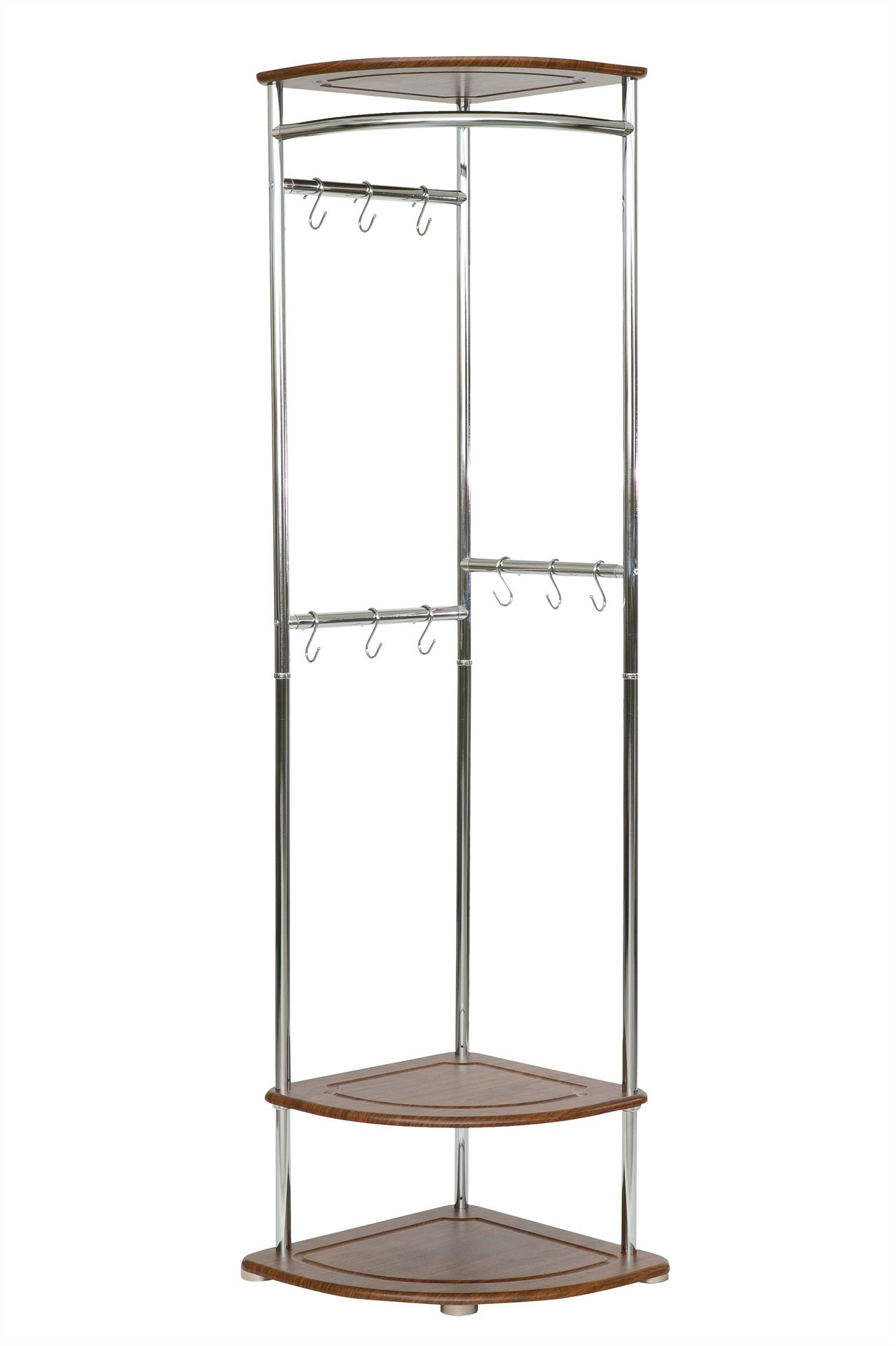 Вешалка выполнена из экологичного и прочного материала МДФ в сочетании с хромированной трубой. Регулируемые опоры позволят Вам правильно установить данный предмет интерьера.