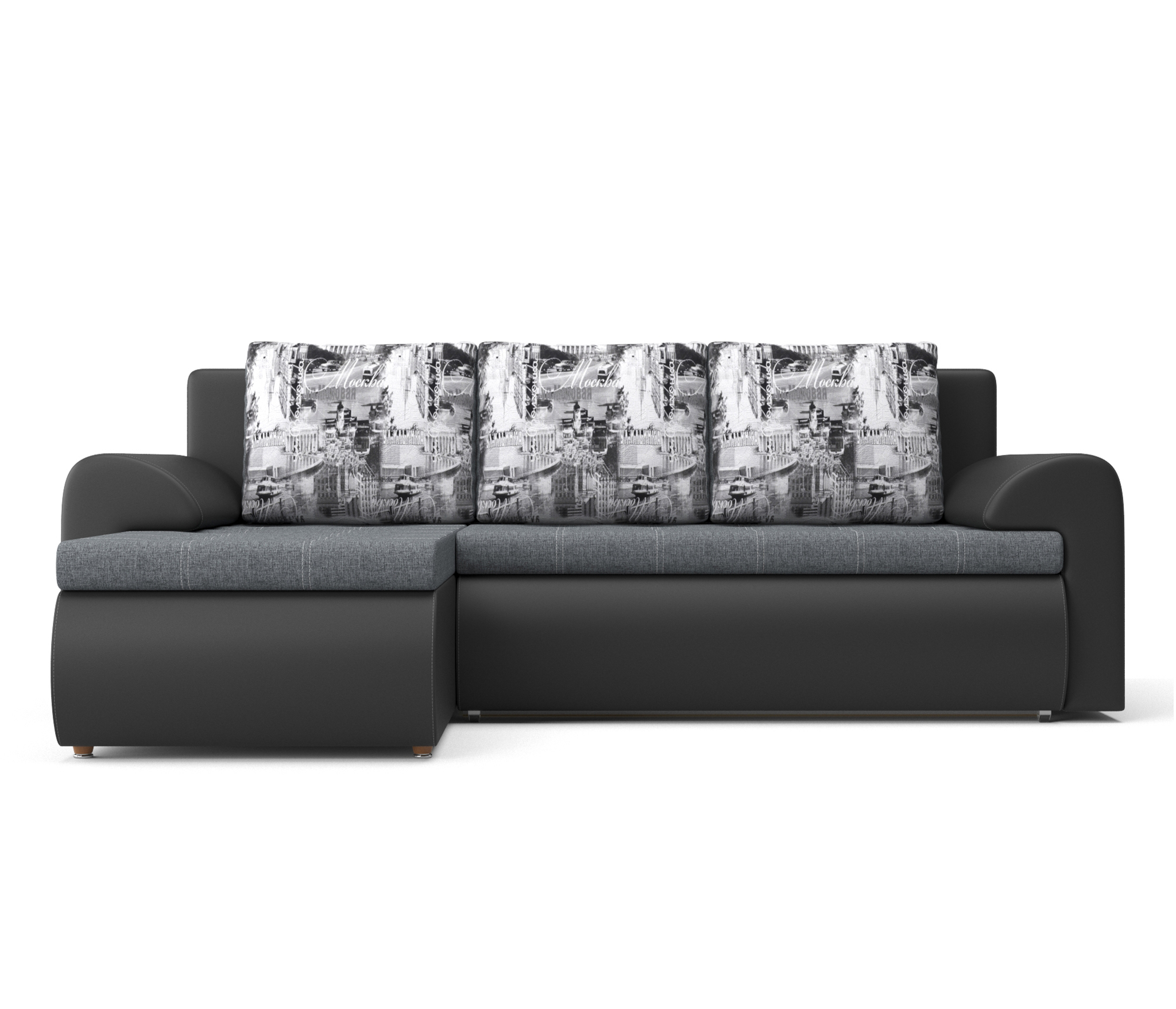 Отзывы о Столплит Угловой диван Цезарь (левый) рогожка/экокожа Черный/ Серый