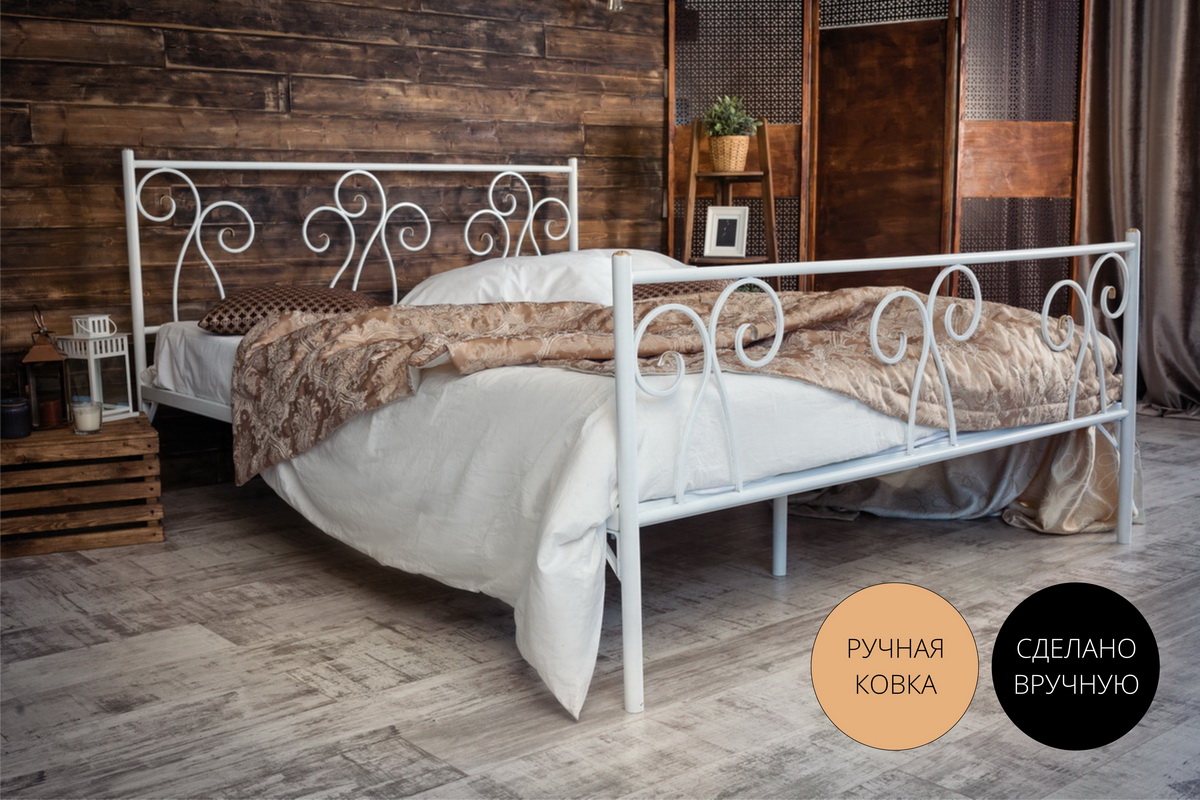 Кованая кровать Лацио 1.8 с двумя спинками (Белый)