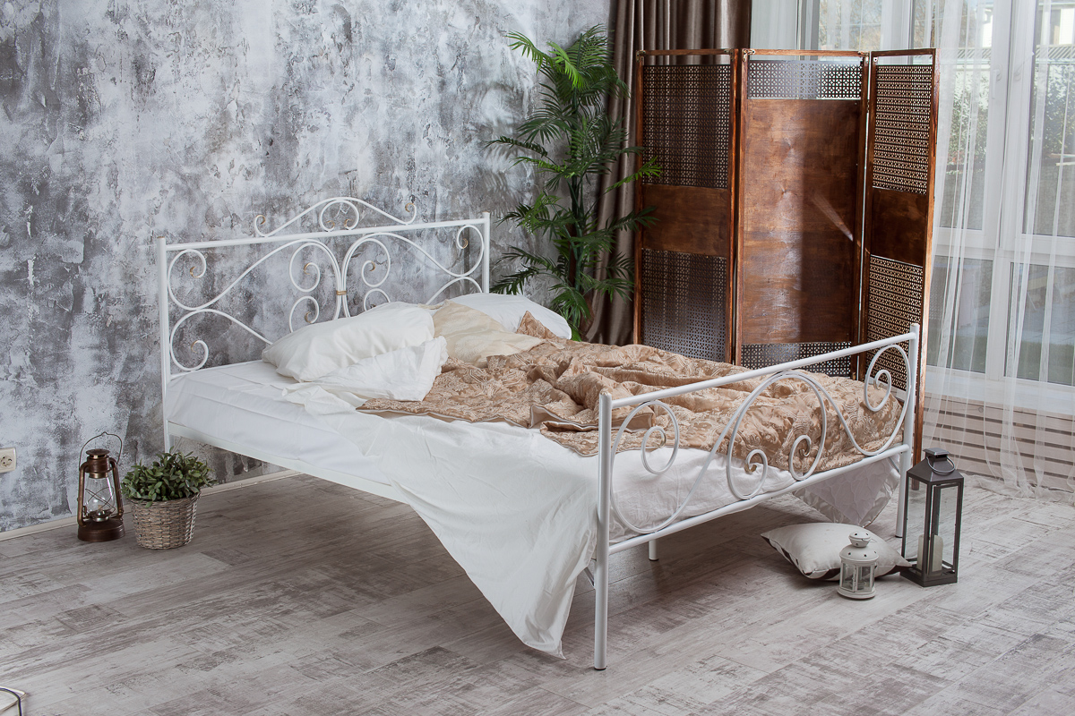 Воздушность и изысканность кованой кровати Валенсия прекрасно сочетаются с ее долговечность и надежностью, обеспеченными качественными и прочными материалами изготовления.